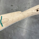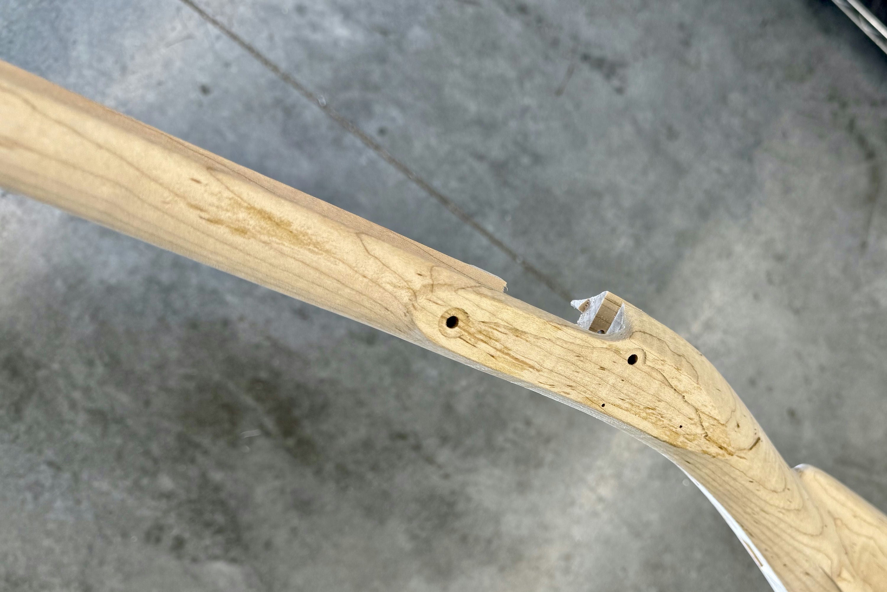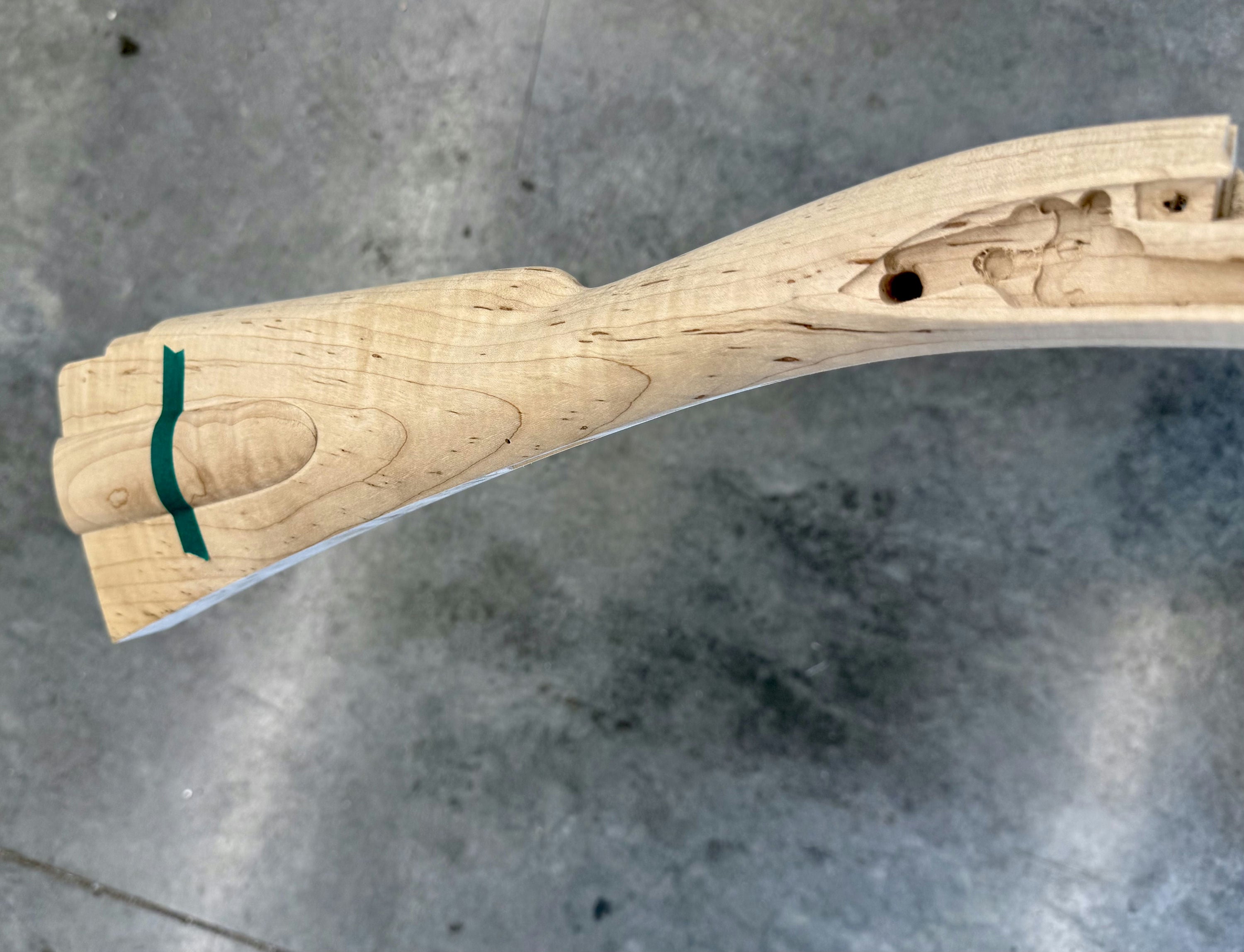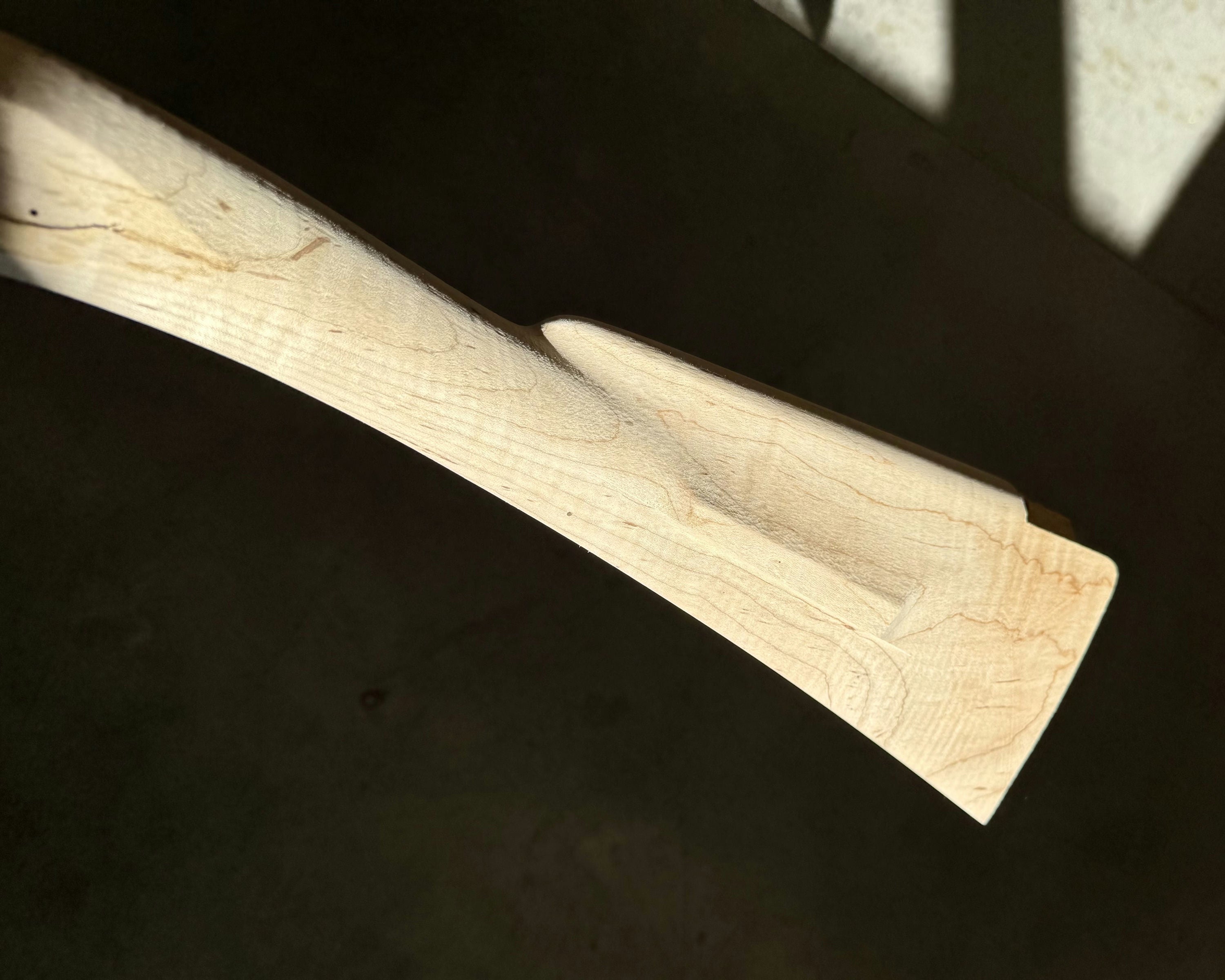 Standard maple stock with some light discoloration by the side plate inlet.