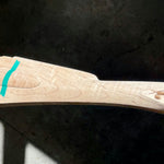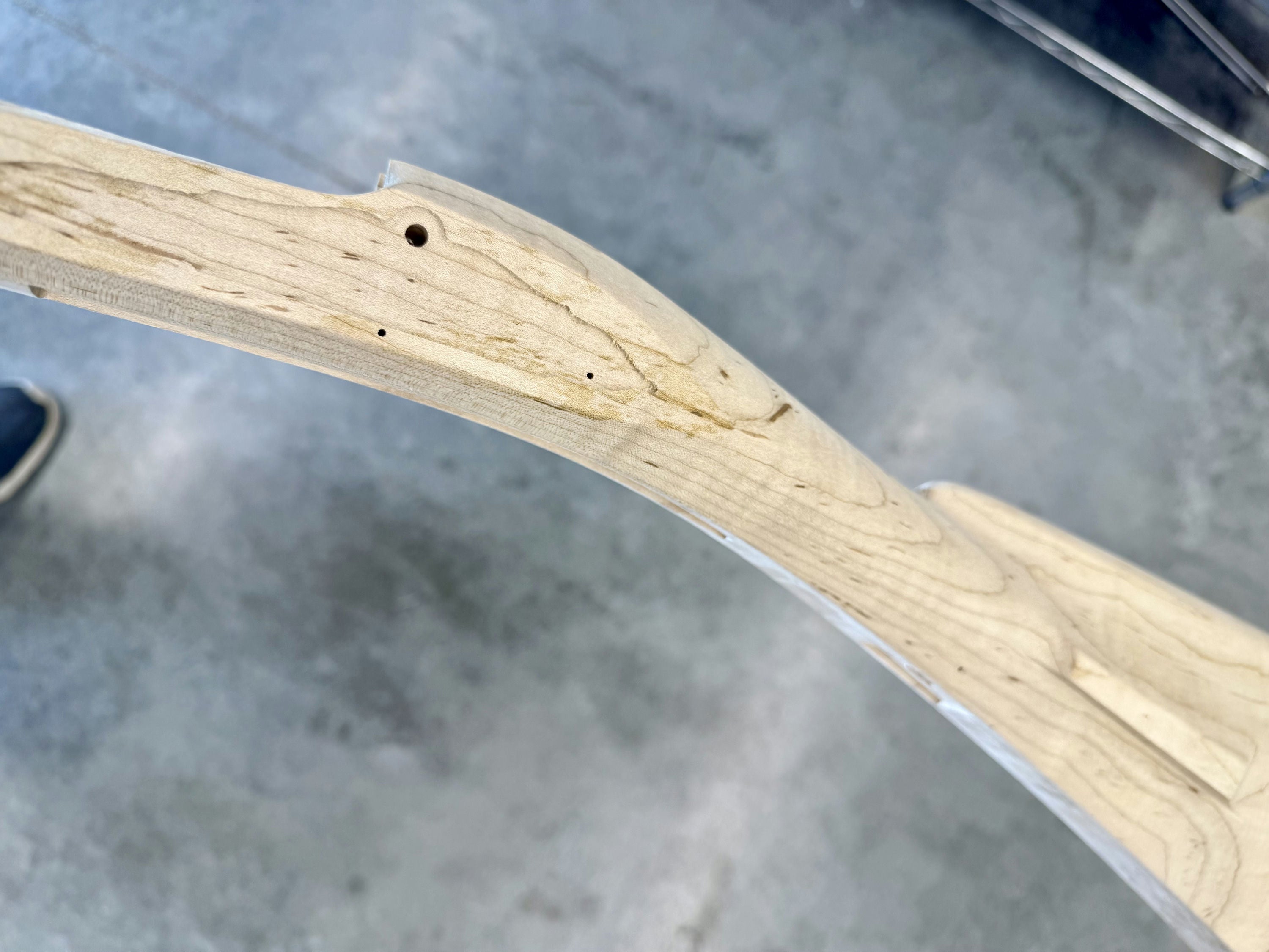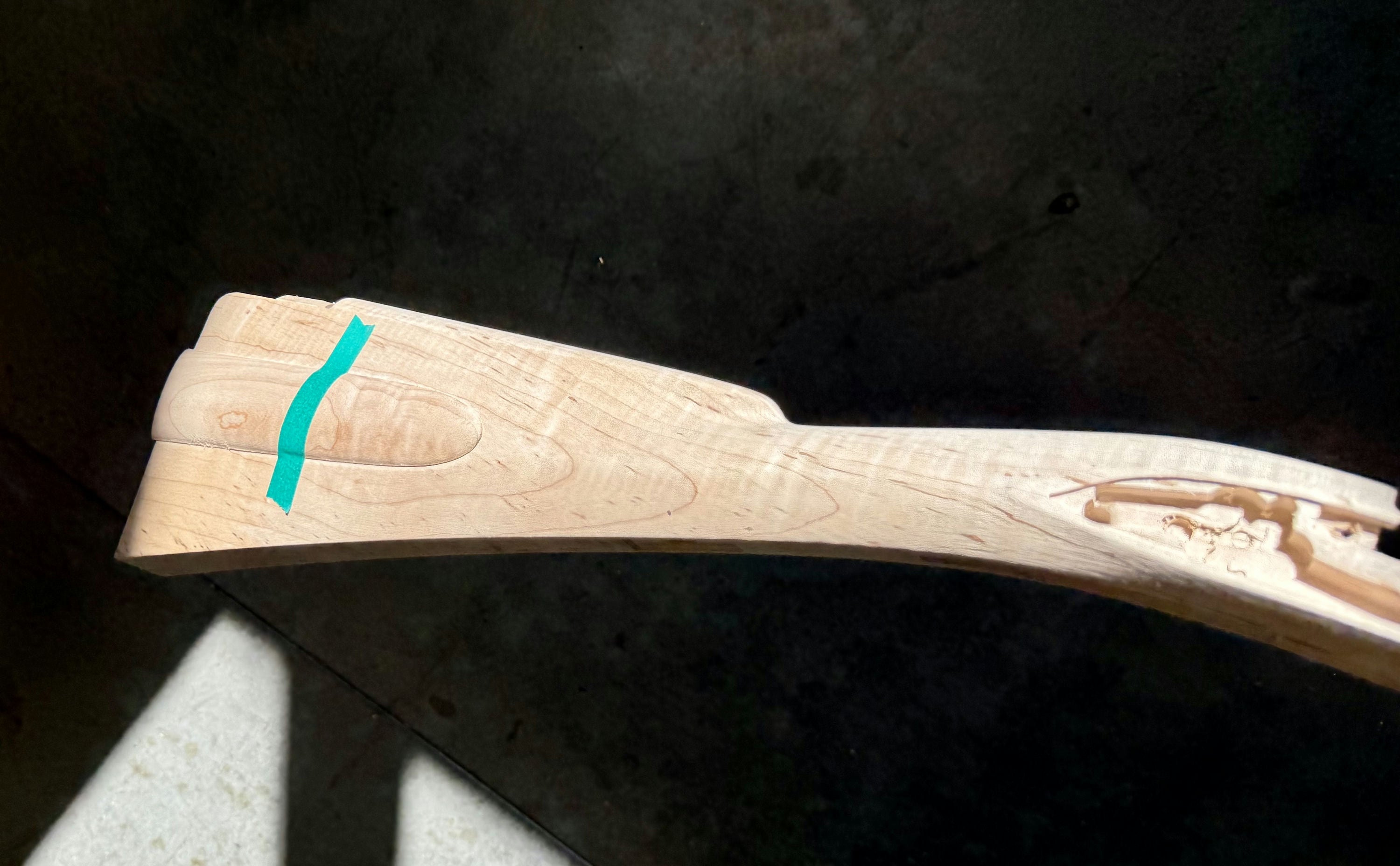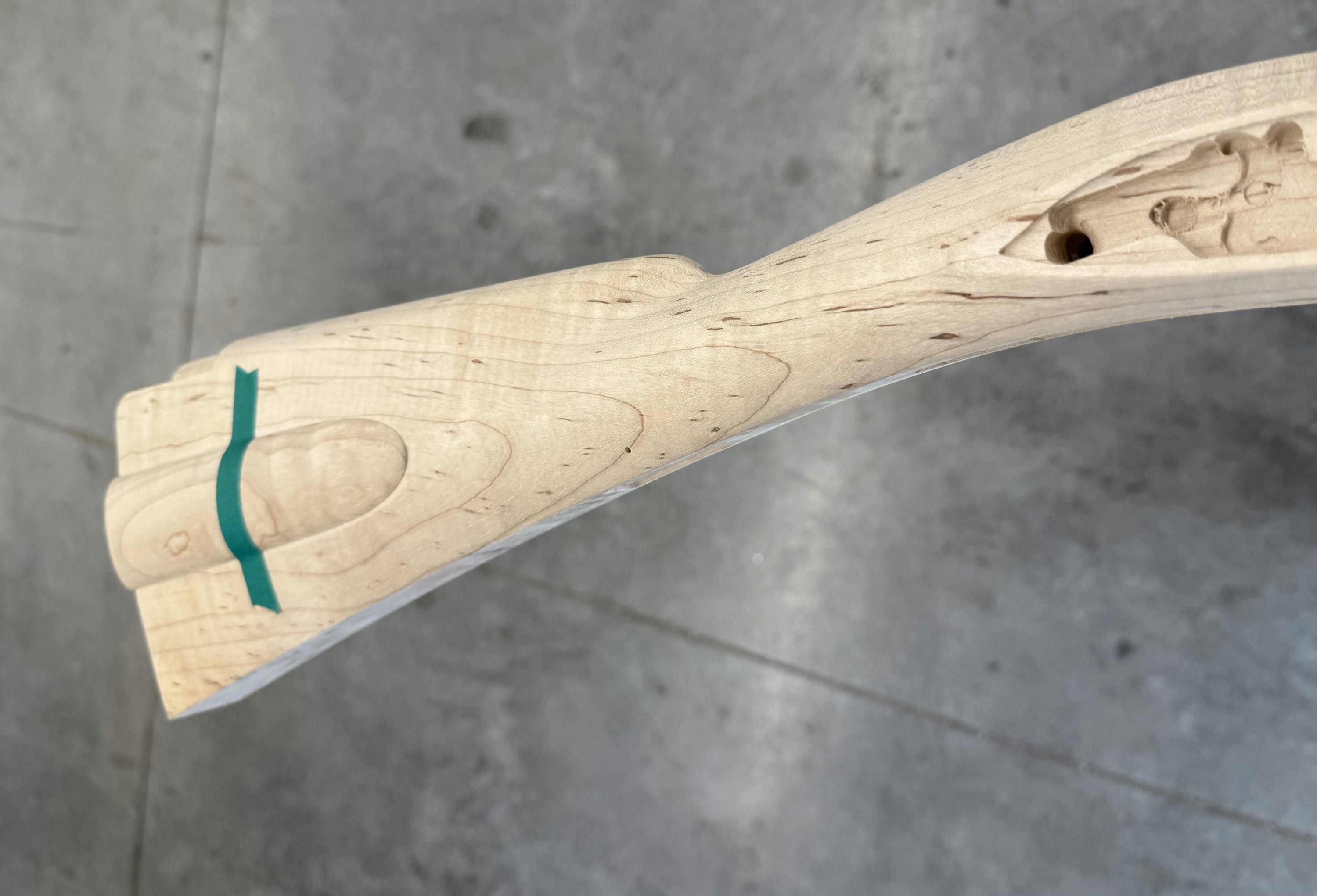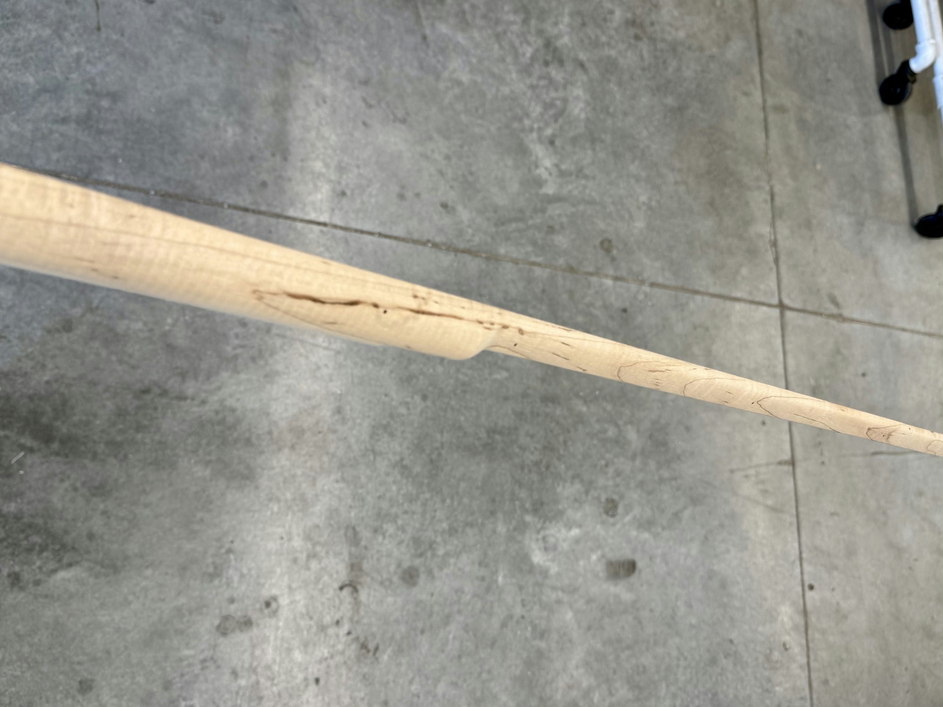 Standard maple stock with some light discoloration by the side plate inlet.