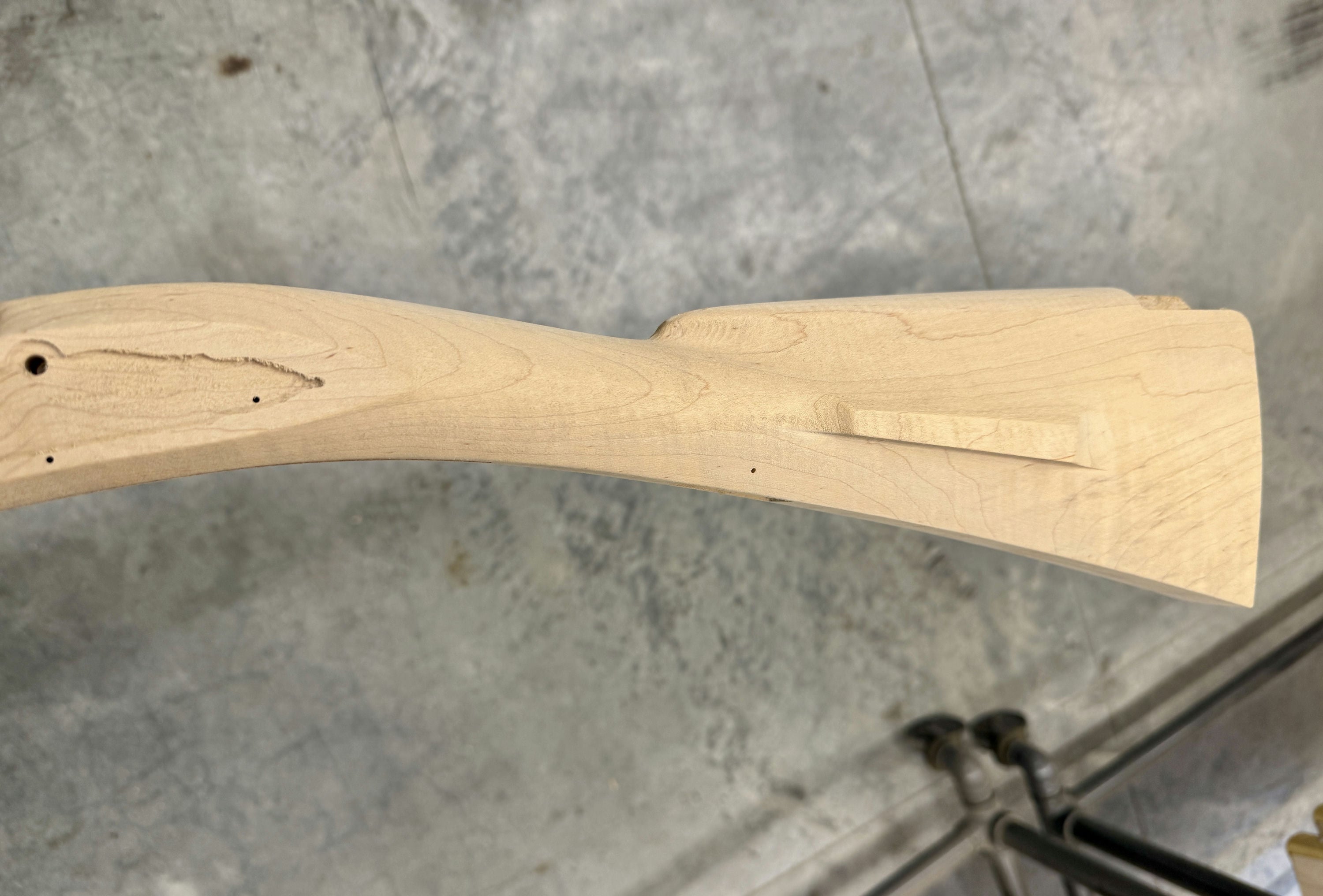 Standard maple stock with a small chip at the nose - will be covered by the nose cap.