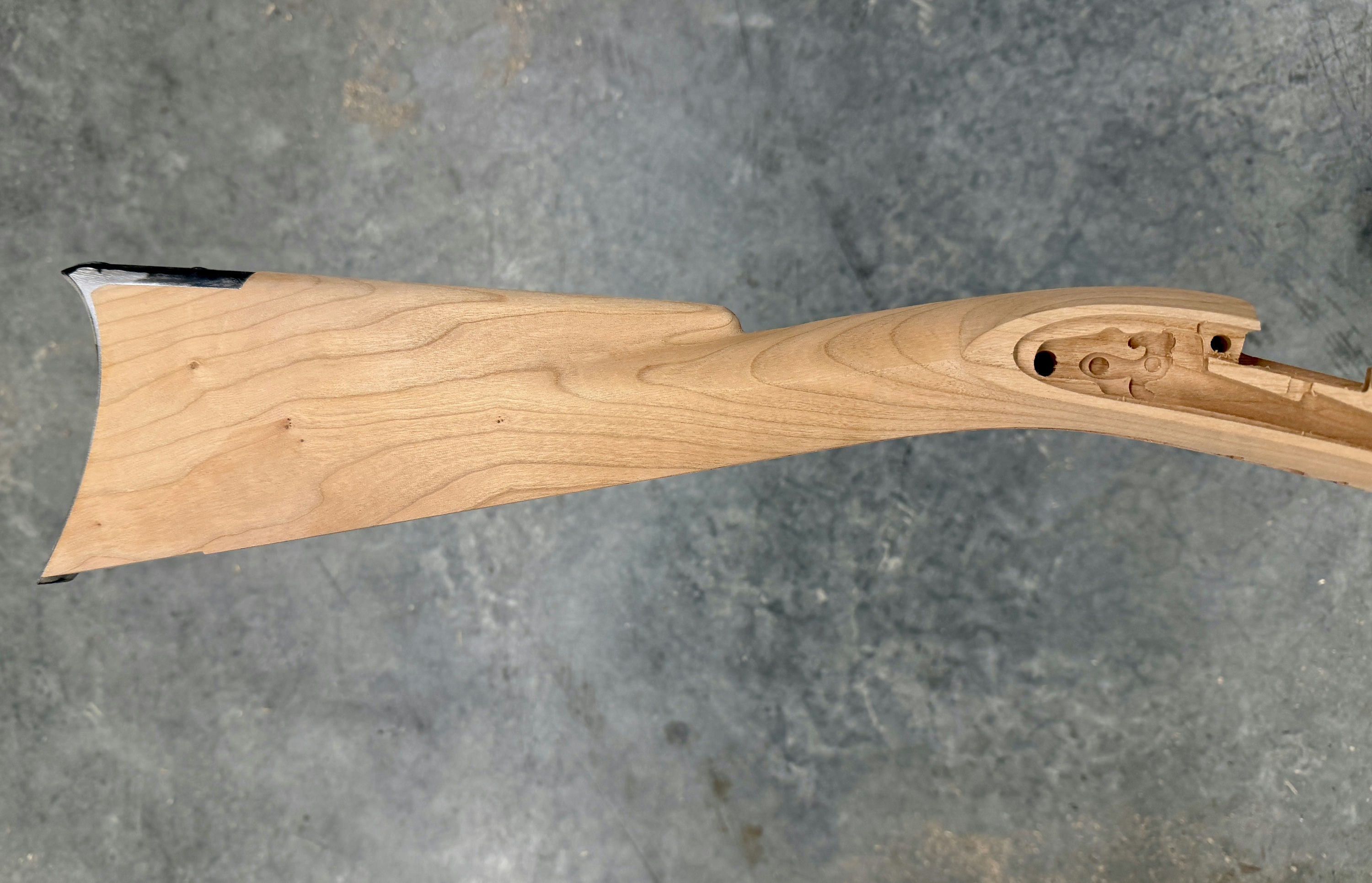 Cherry stock with the German silver inlay package - no issues.