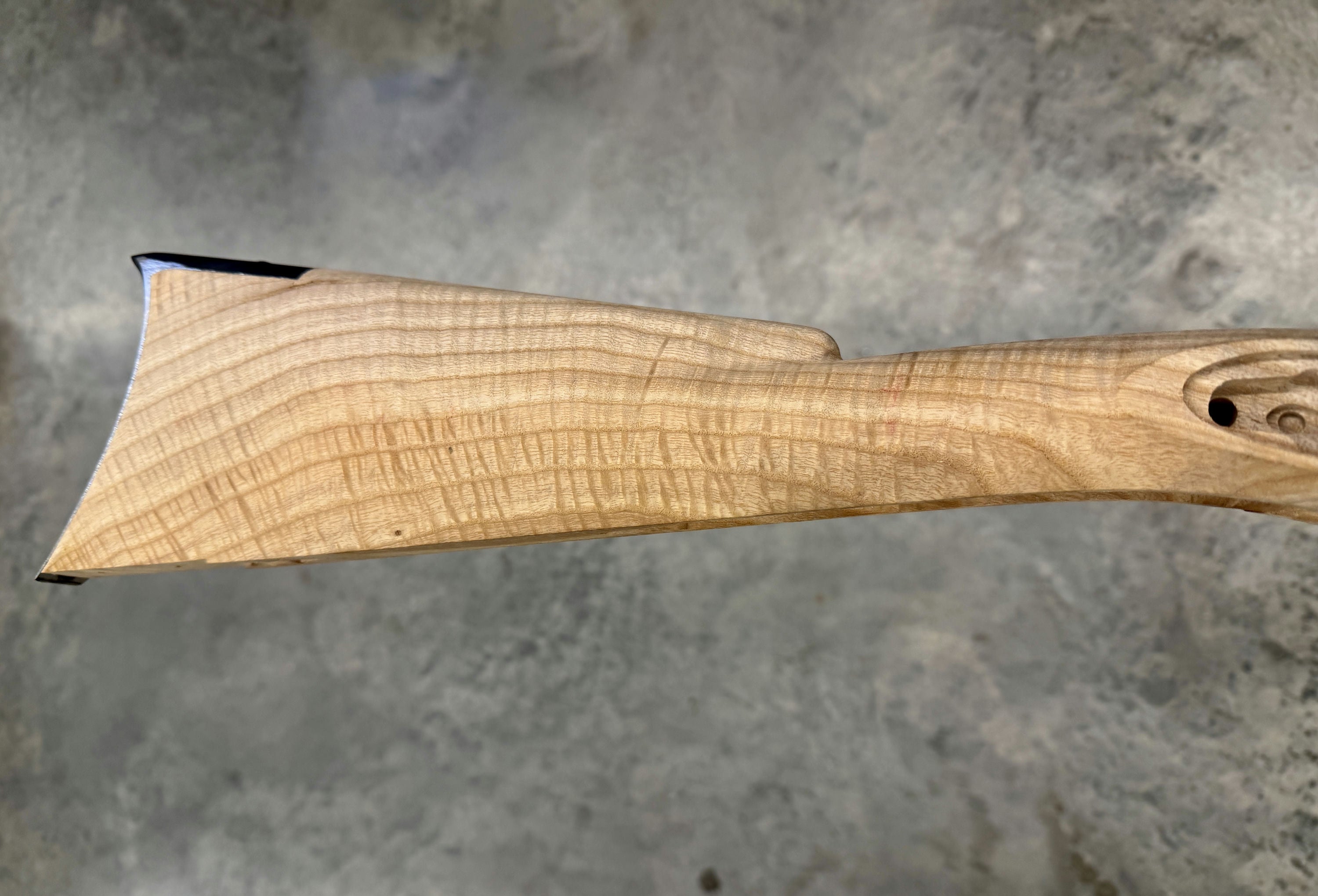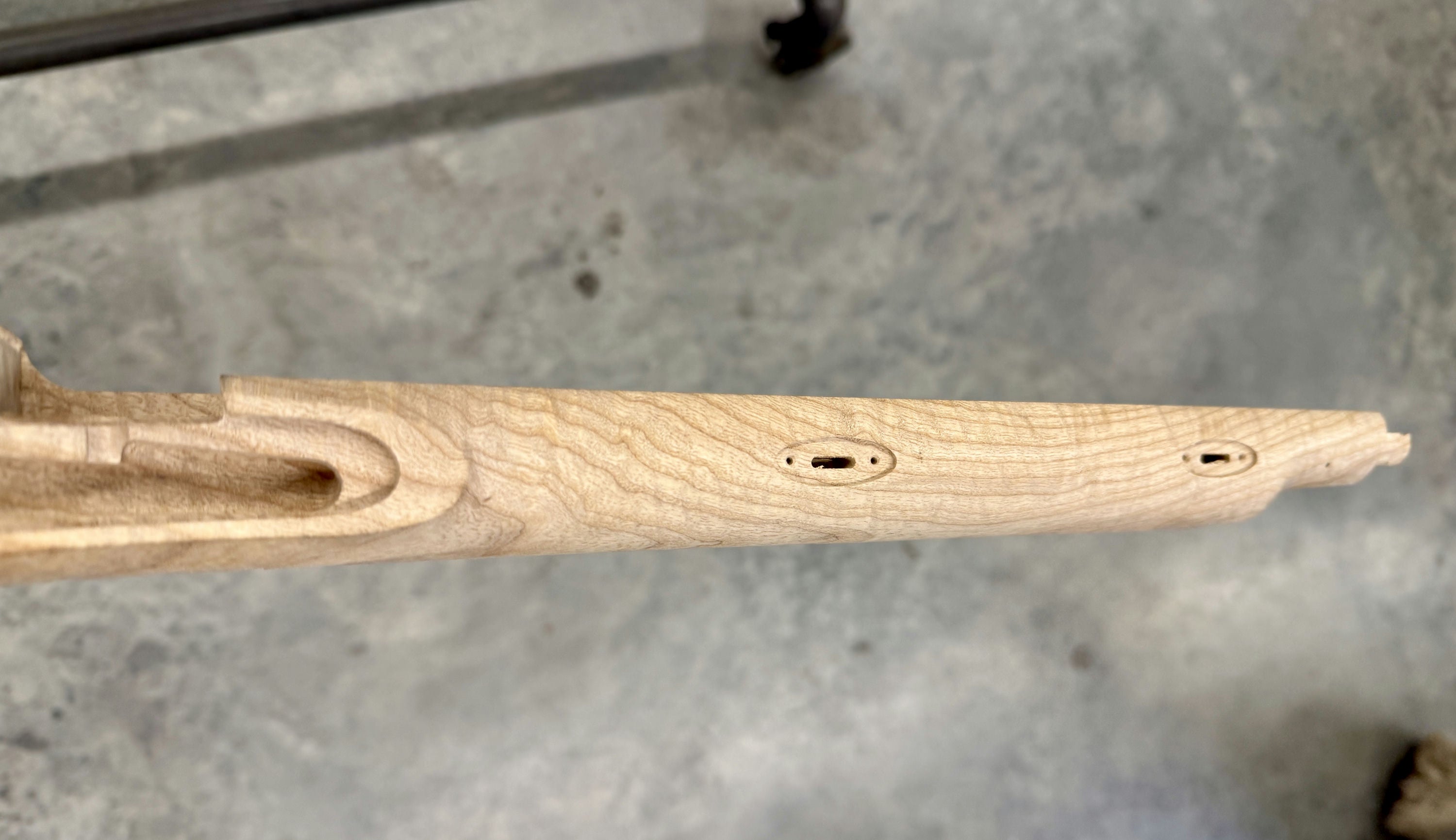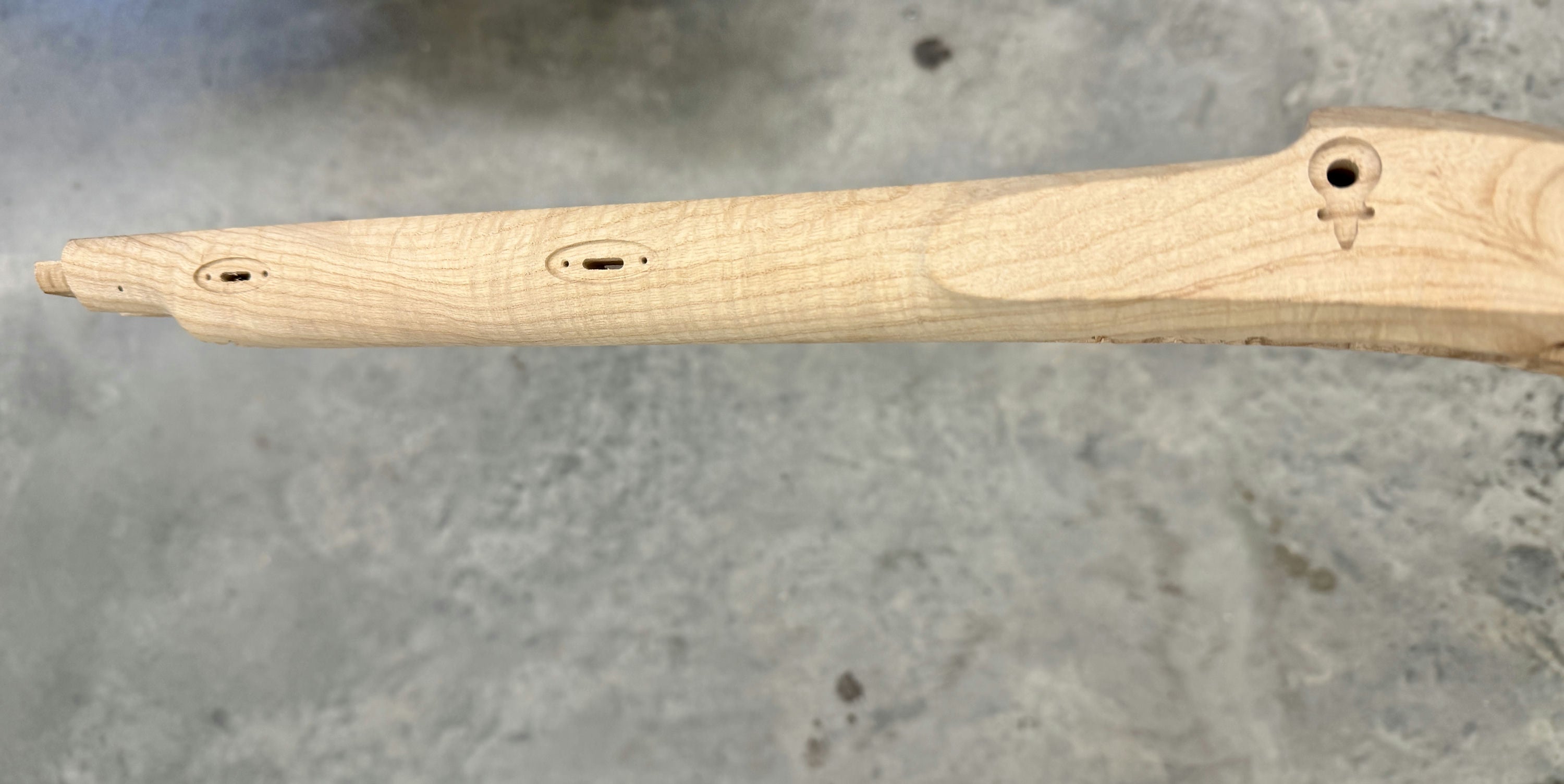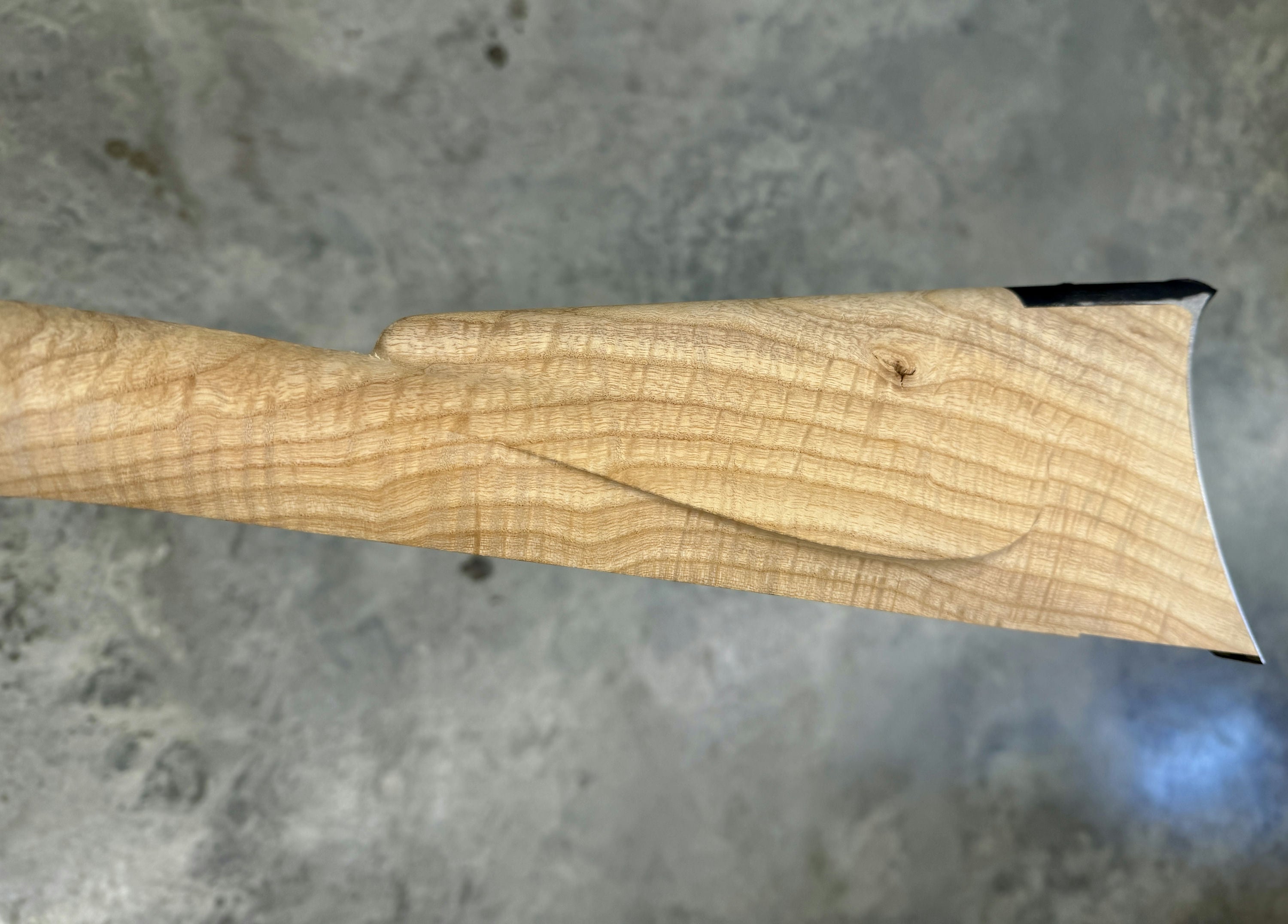 Beautiful ash stock with a void in the cheek and by the trigger guard inlet.