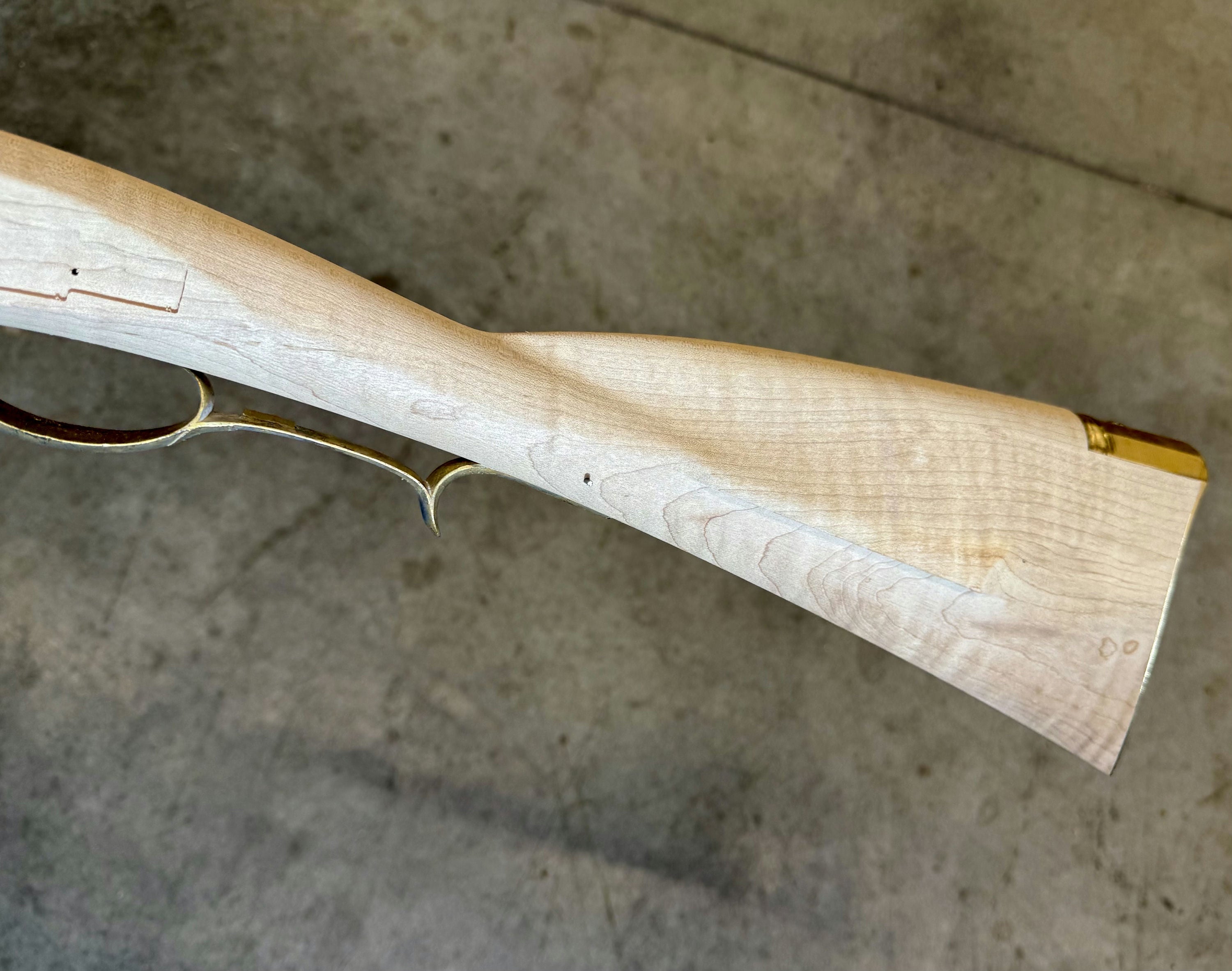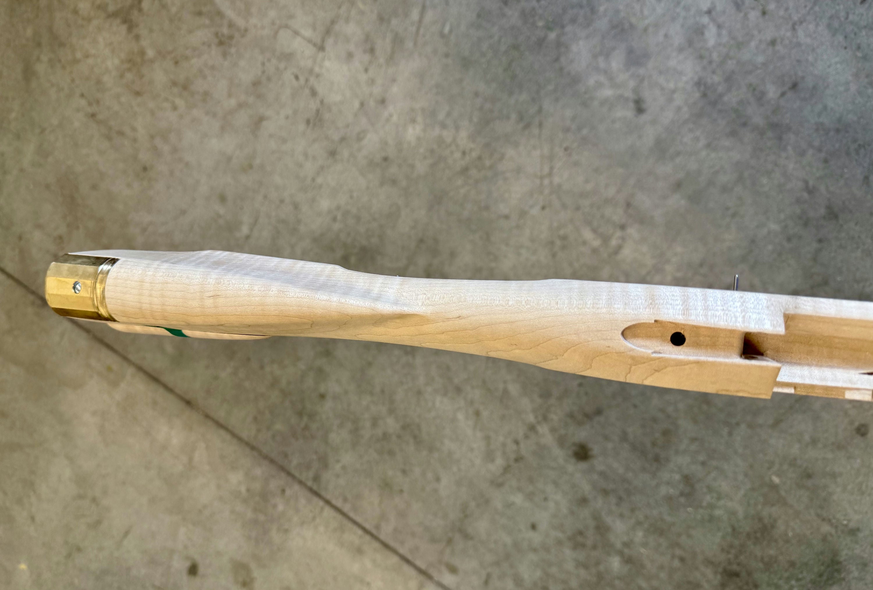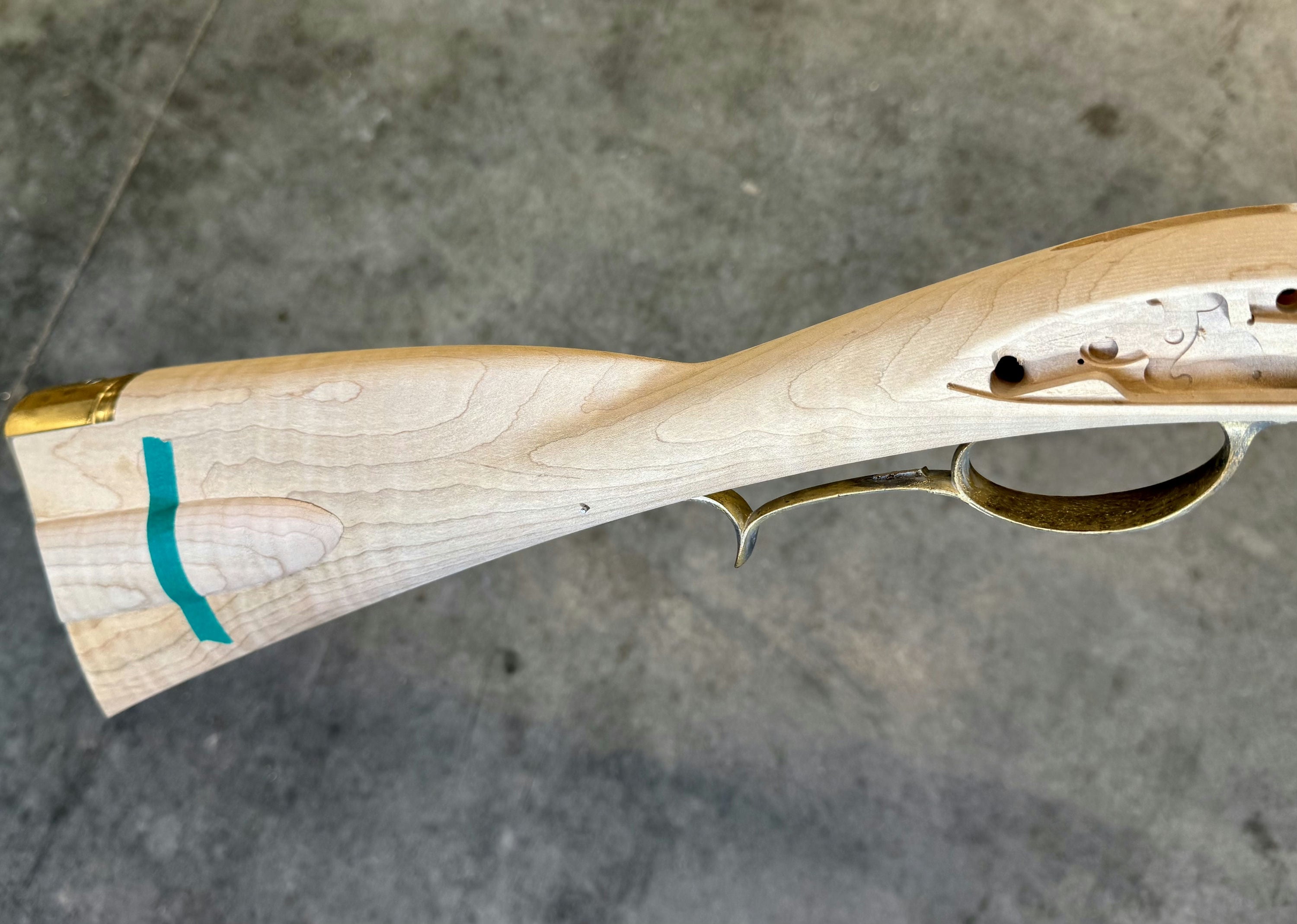 Fancy maple stock with a filled bark inclusion by the entry pipe.