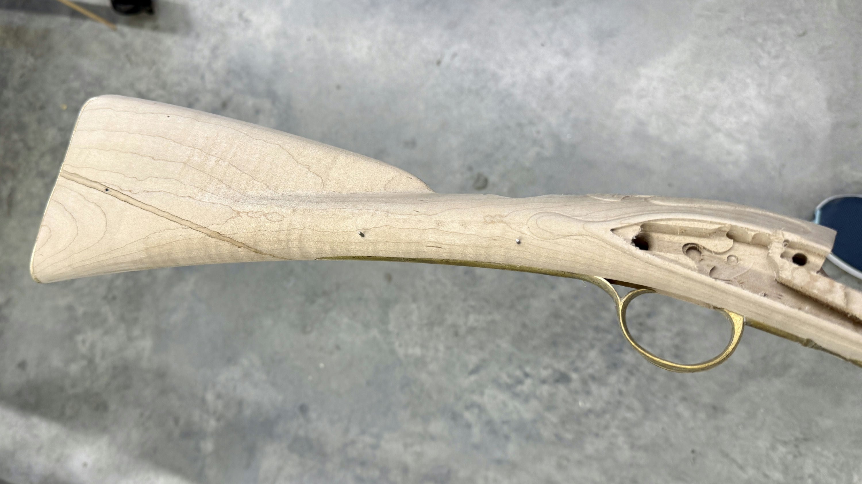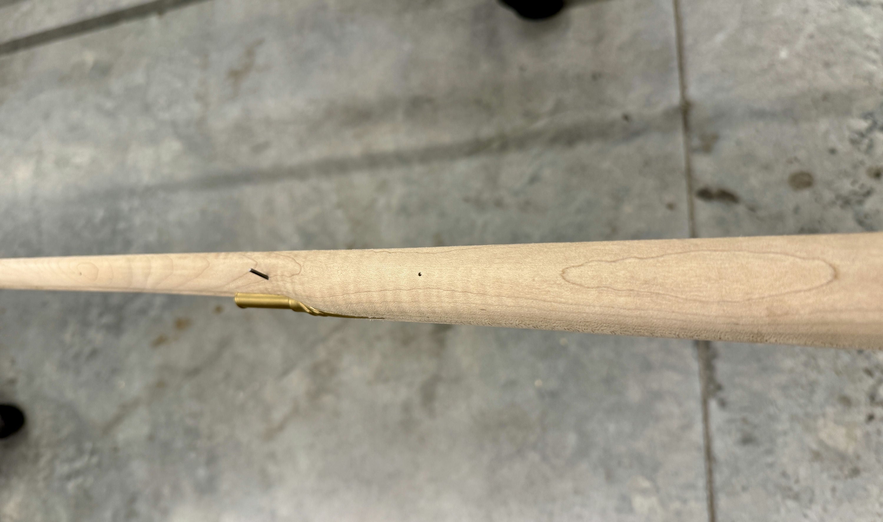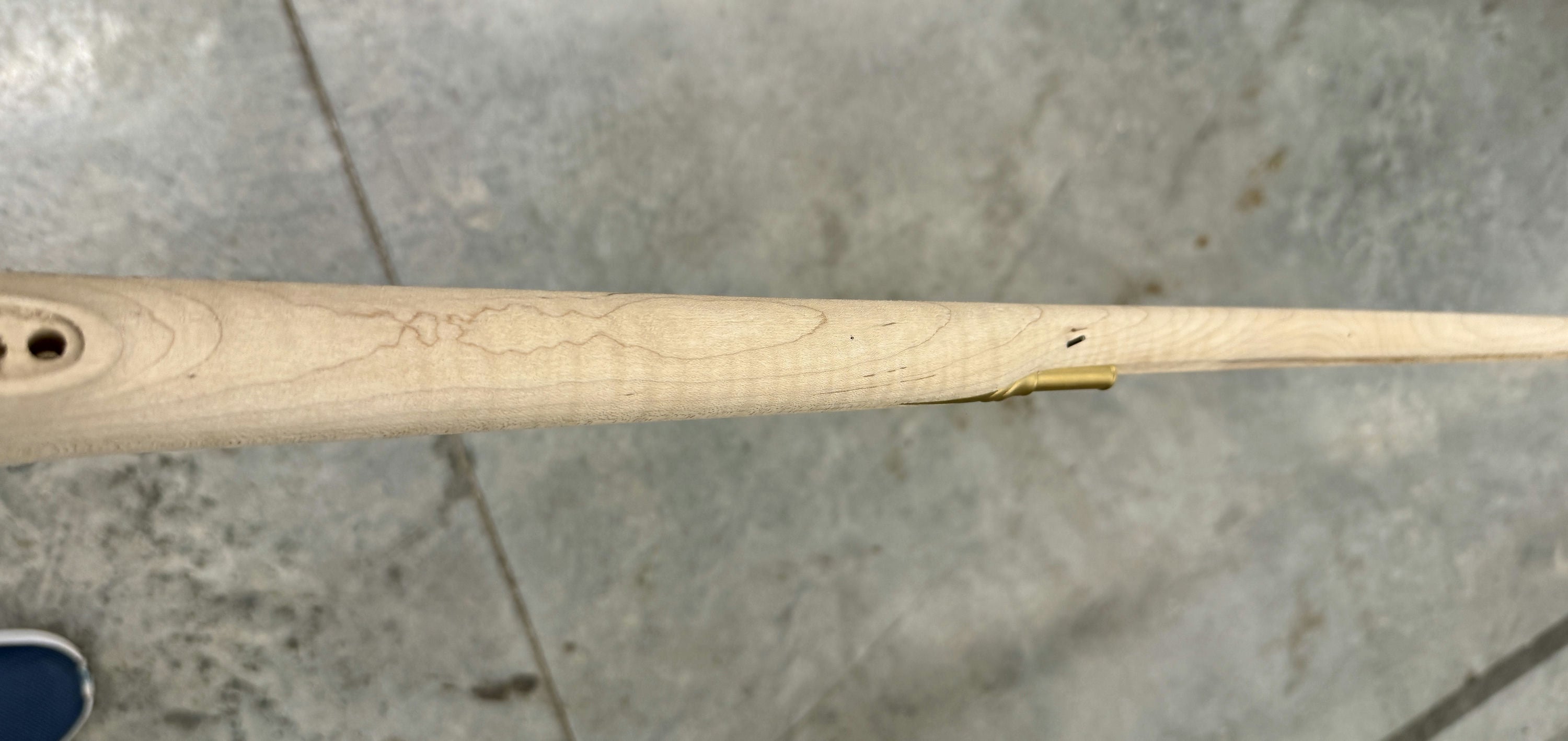 Standard maple stock with a worm stain and filled hole.