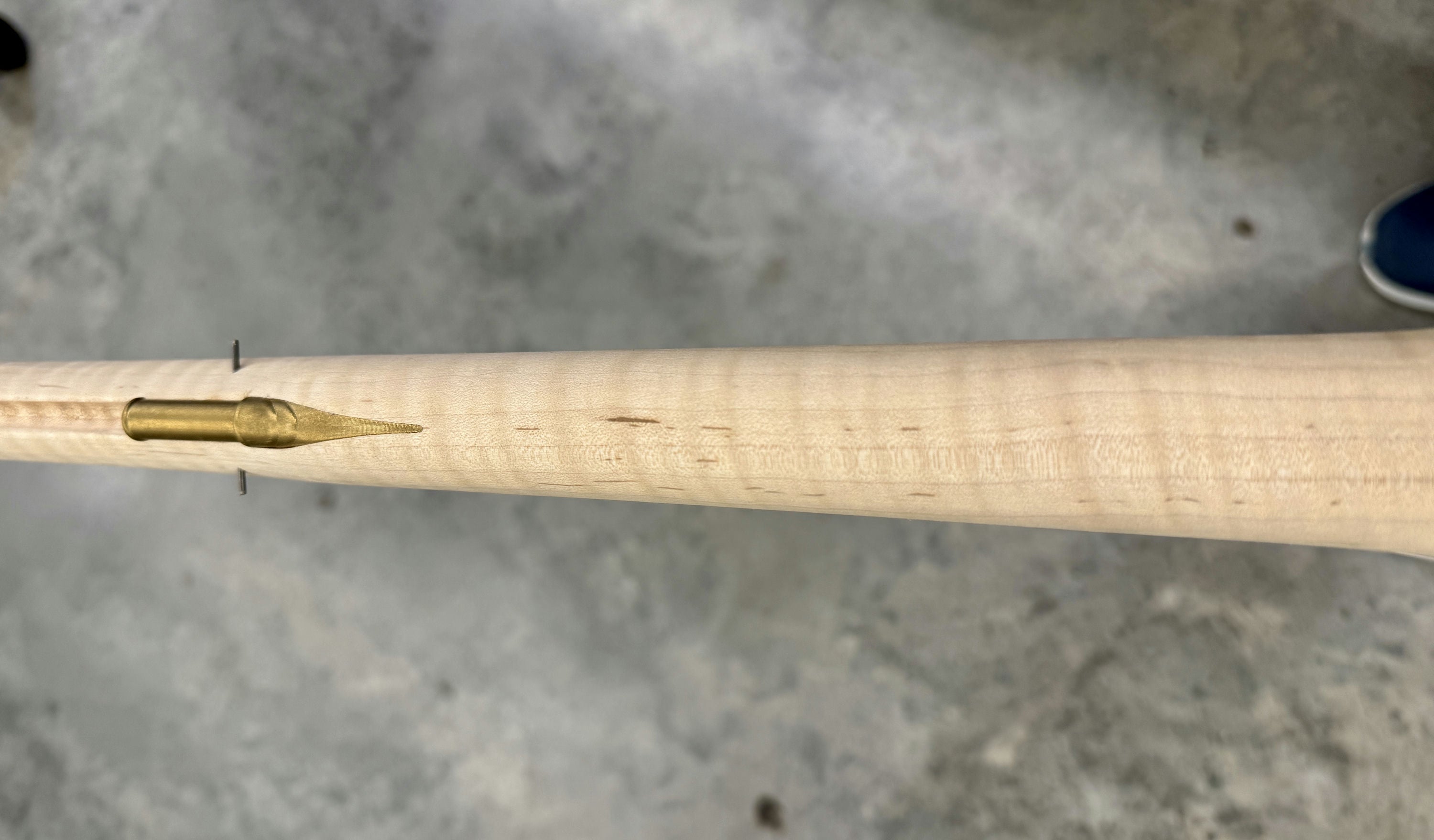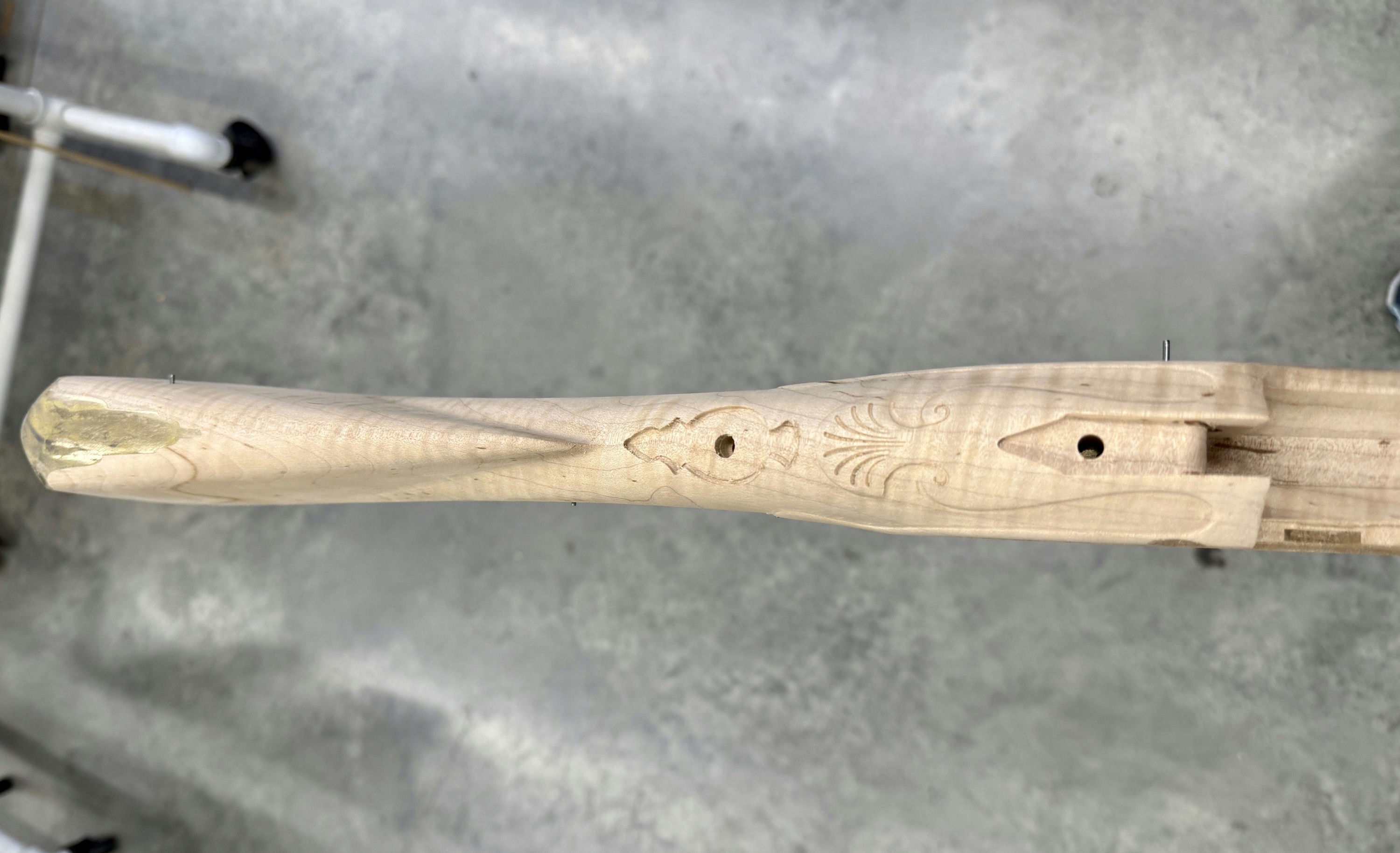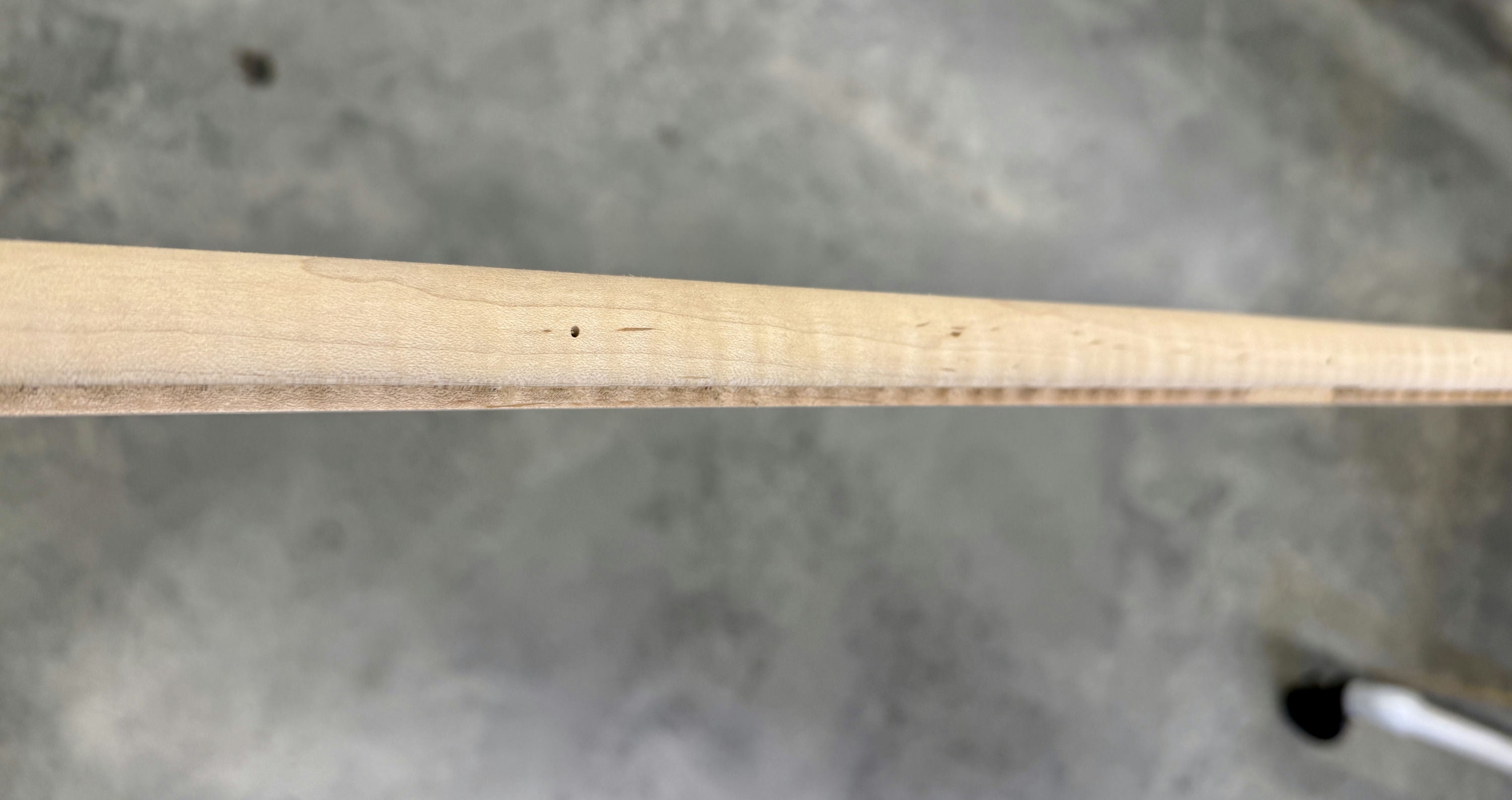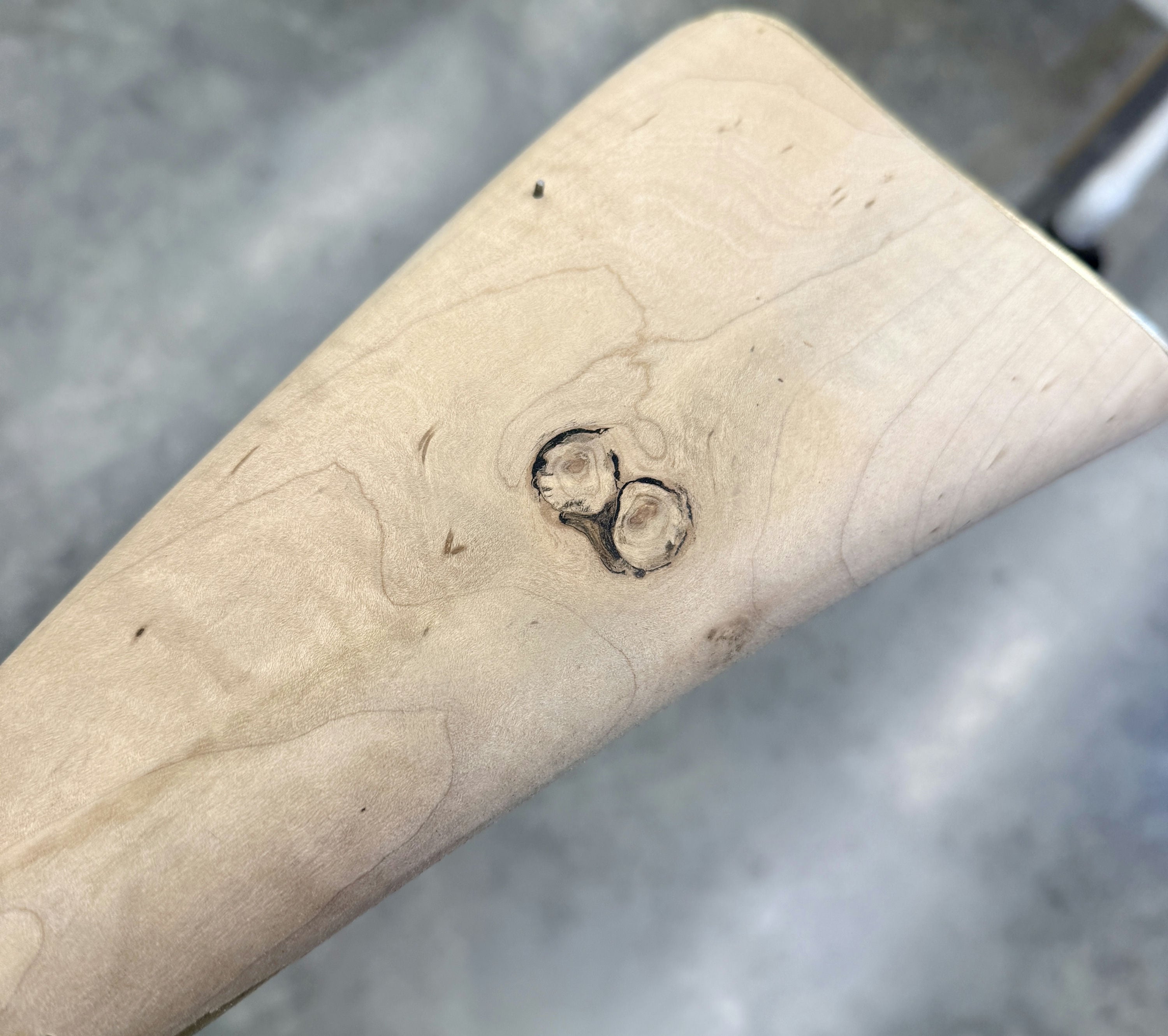 Stock between standard and fancy maple with a filled knot in the butt stock.