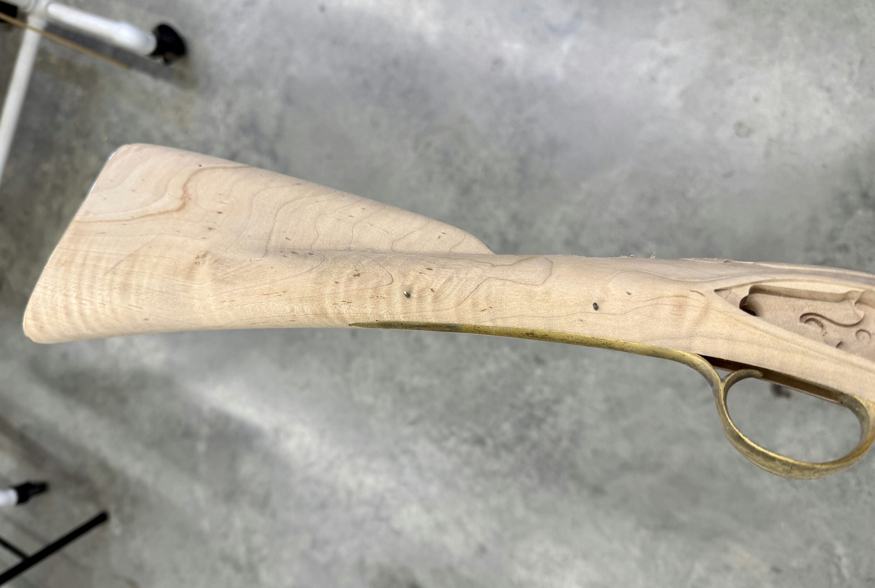• CNC machined stock for extremely close tolerances and fine surface finish, embellished with a relief shell carving around the tang, as well as relief lock moldings and beaver tails.