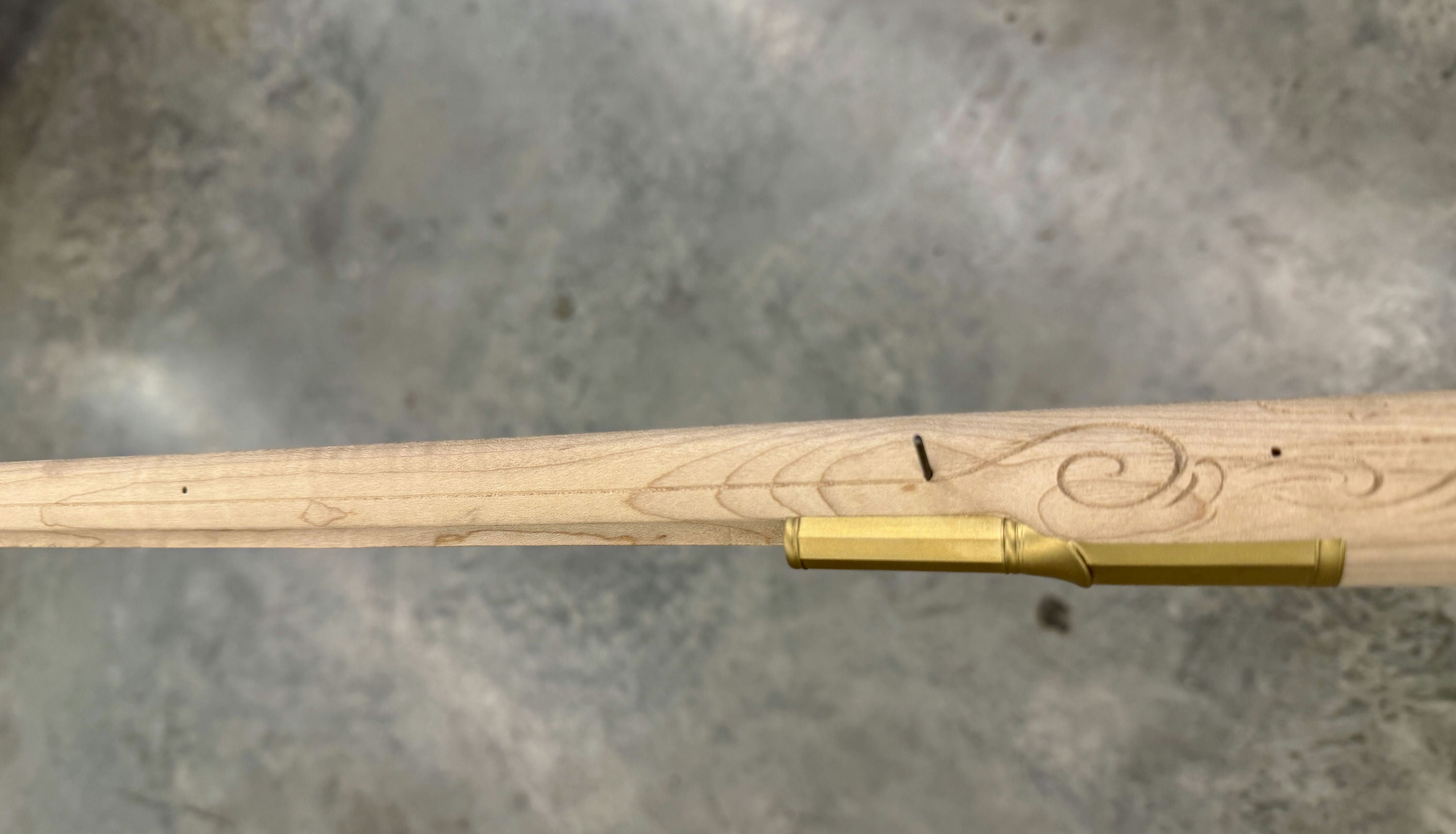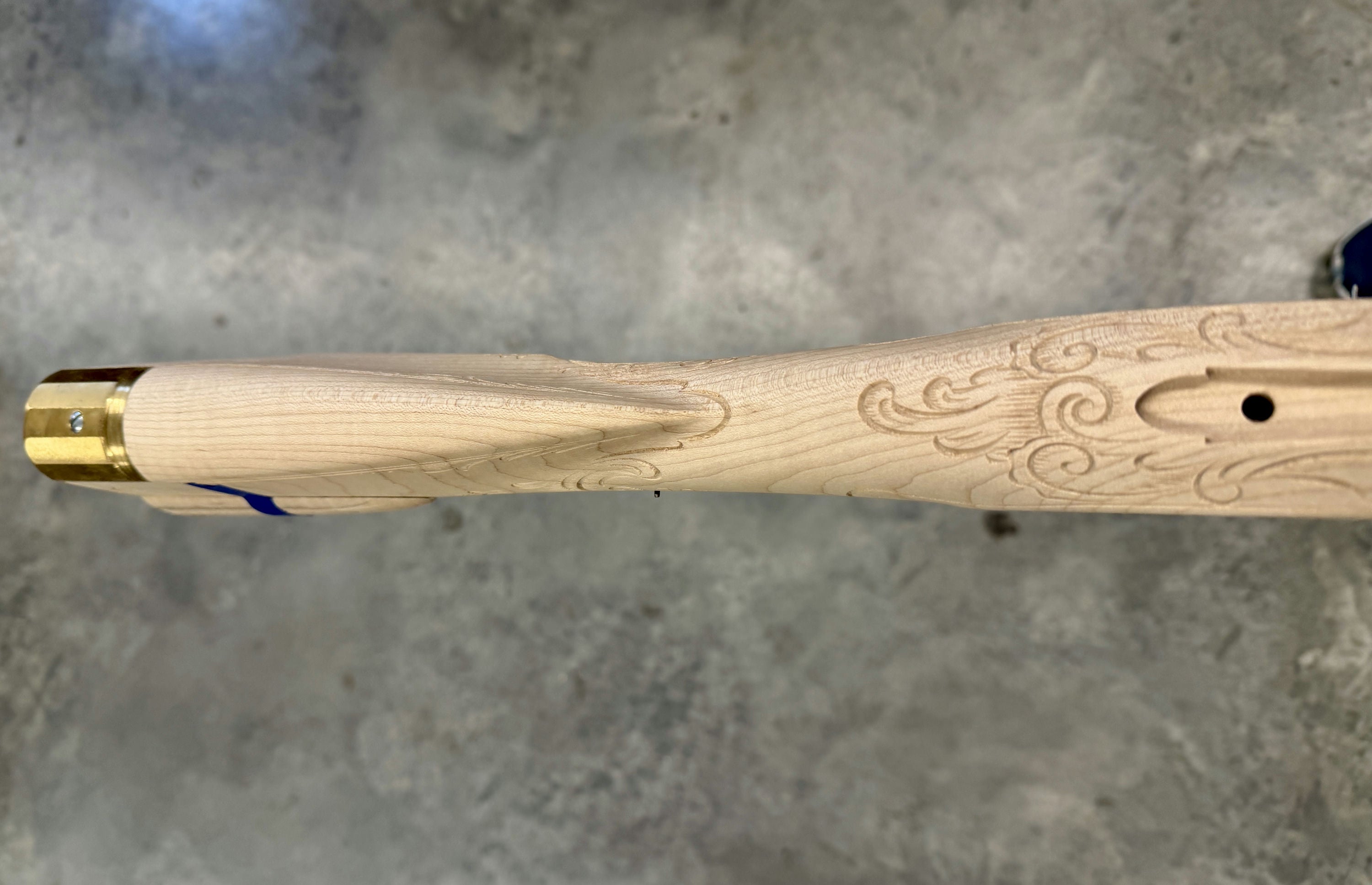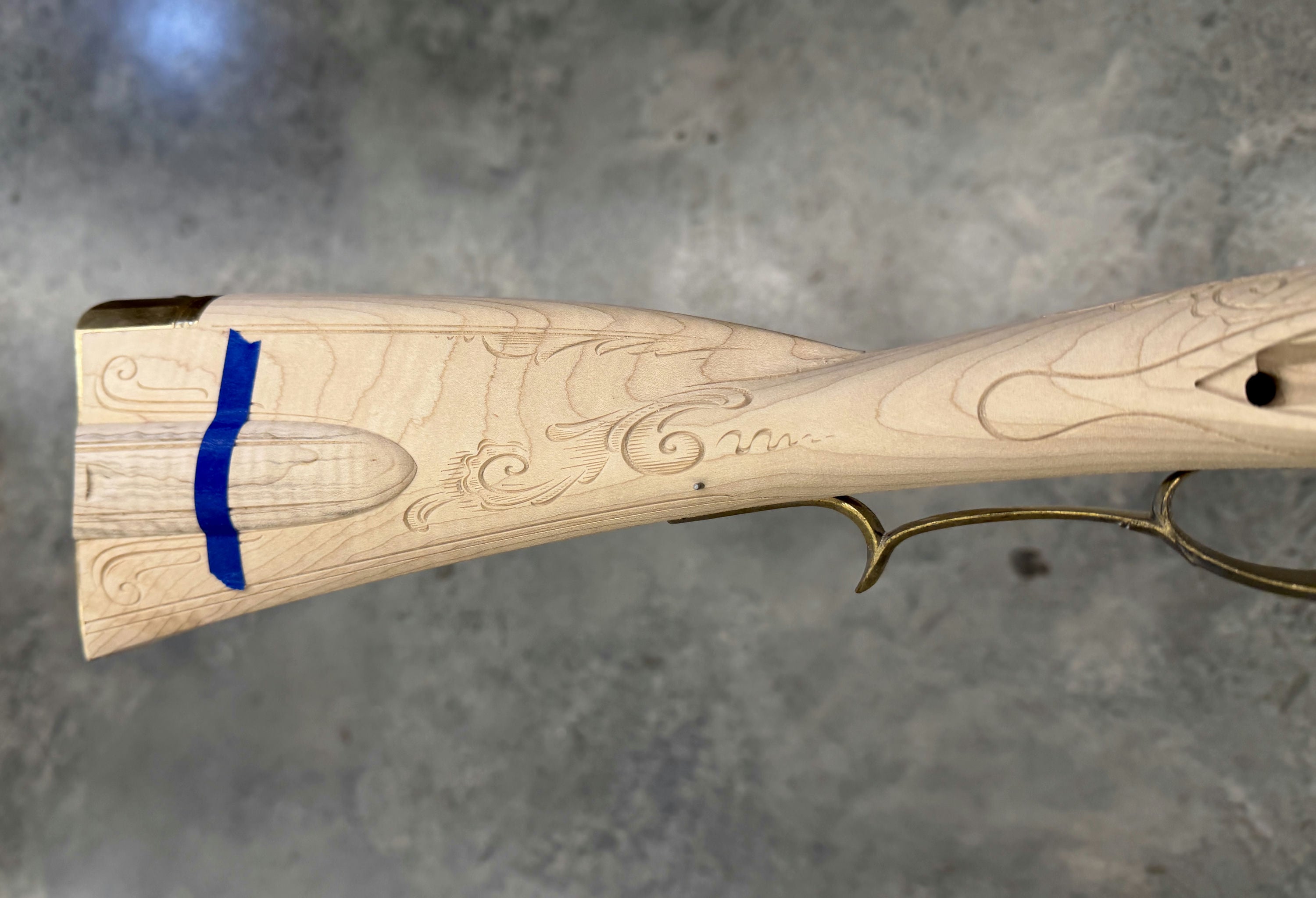 Standard maple stock with a chip by the nose cap - wood included for repair.