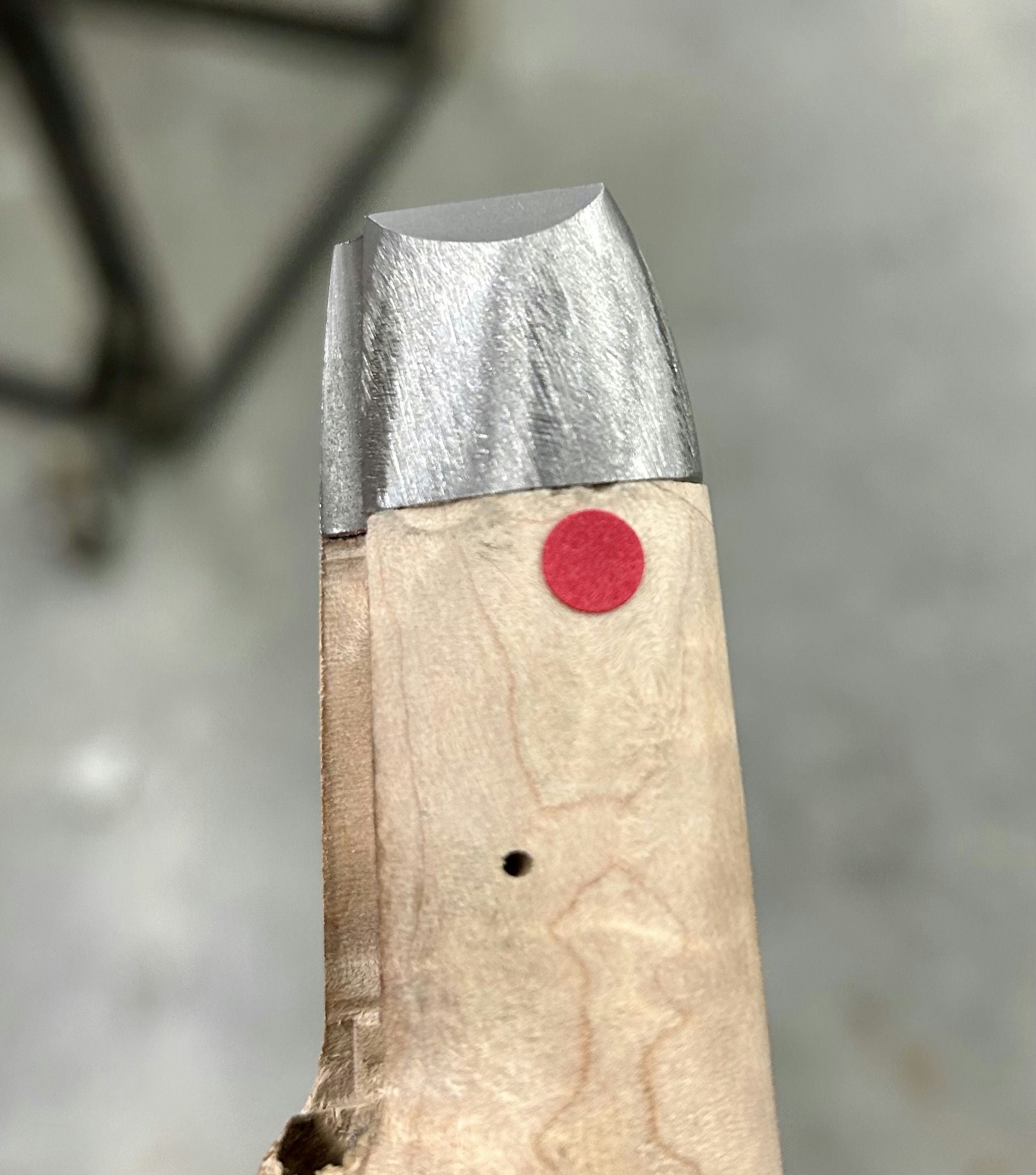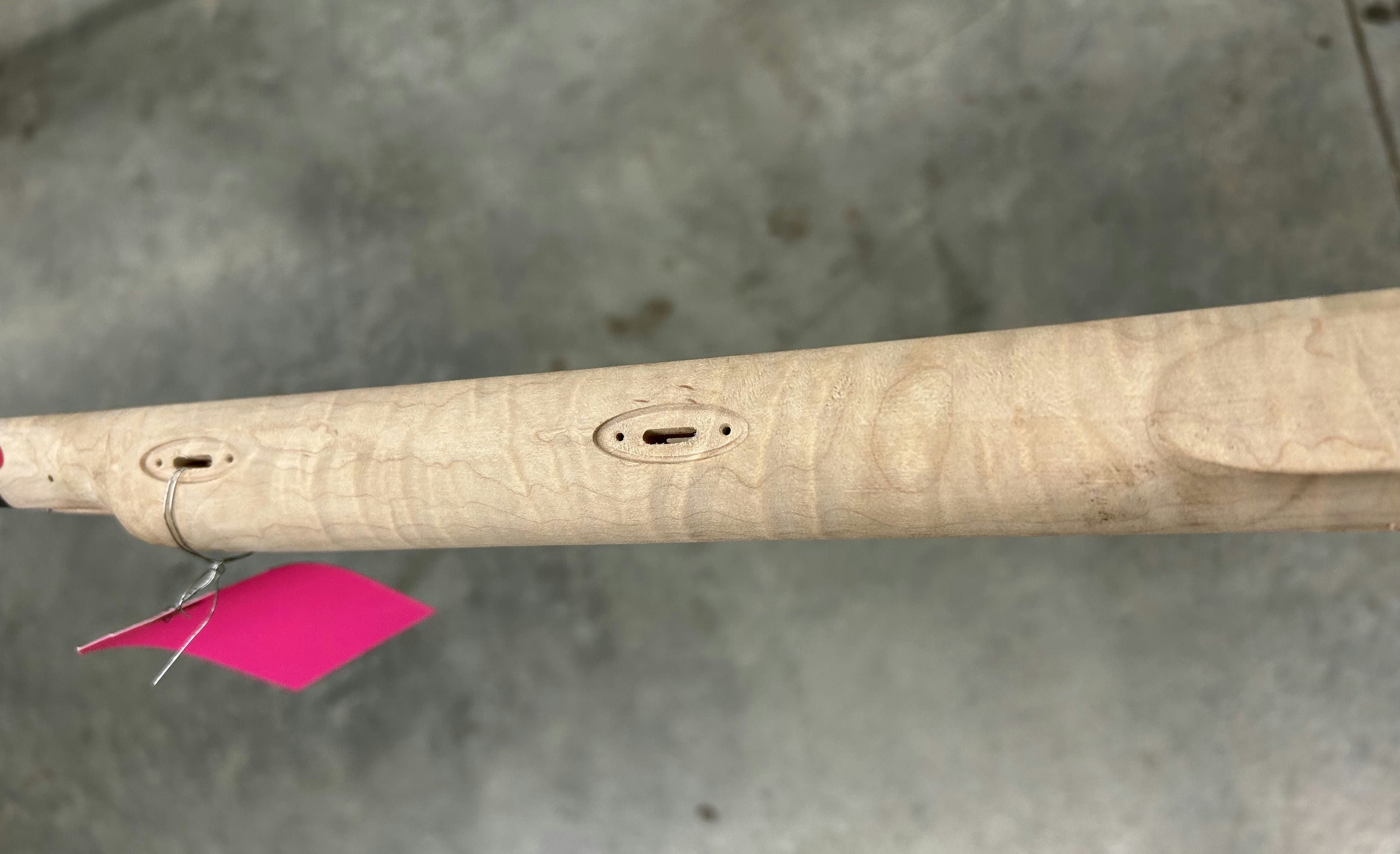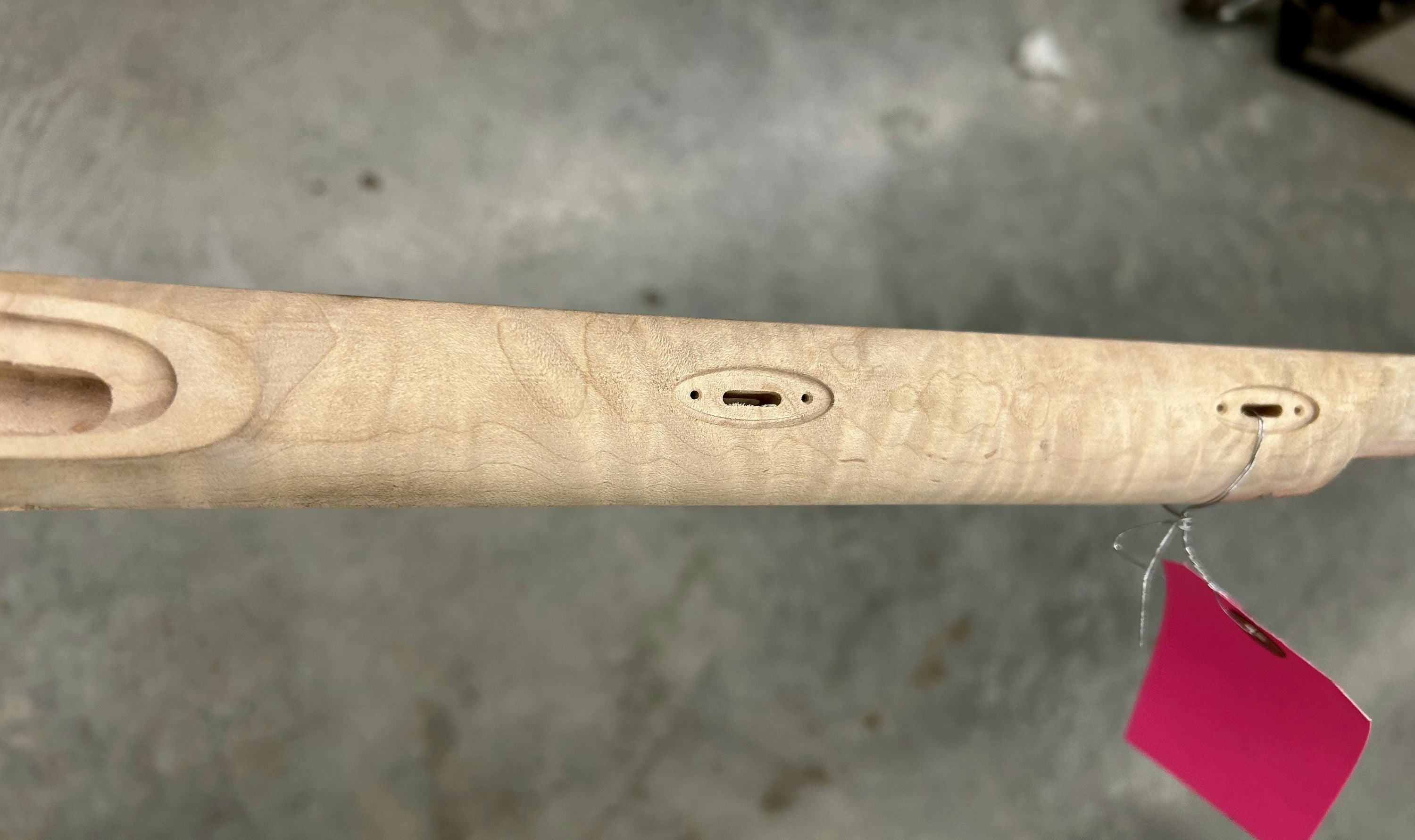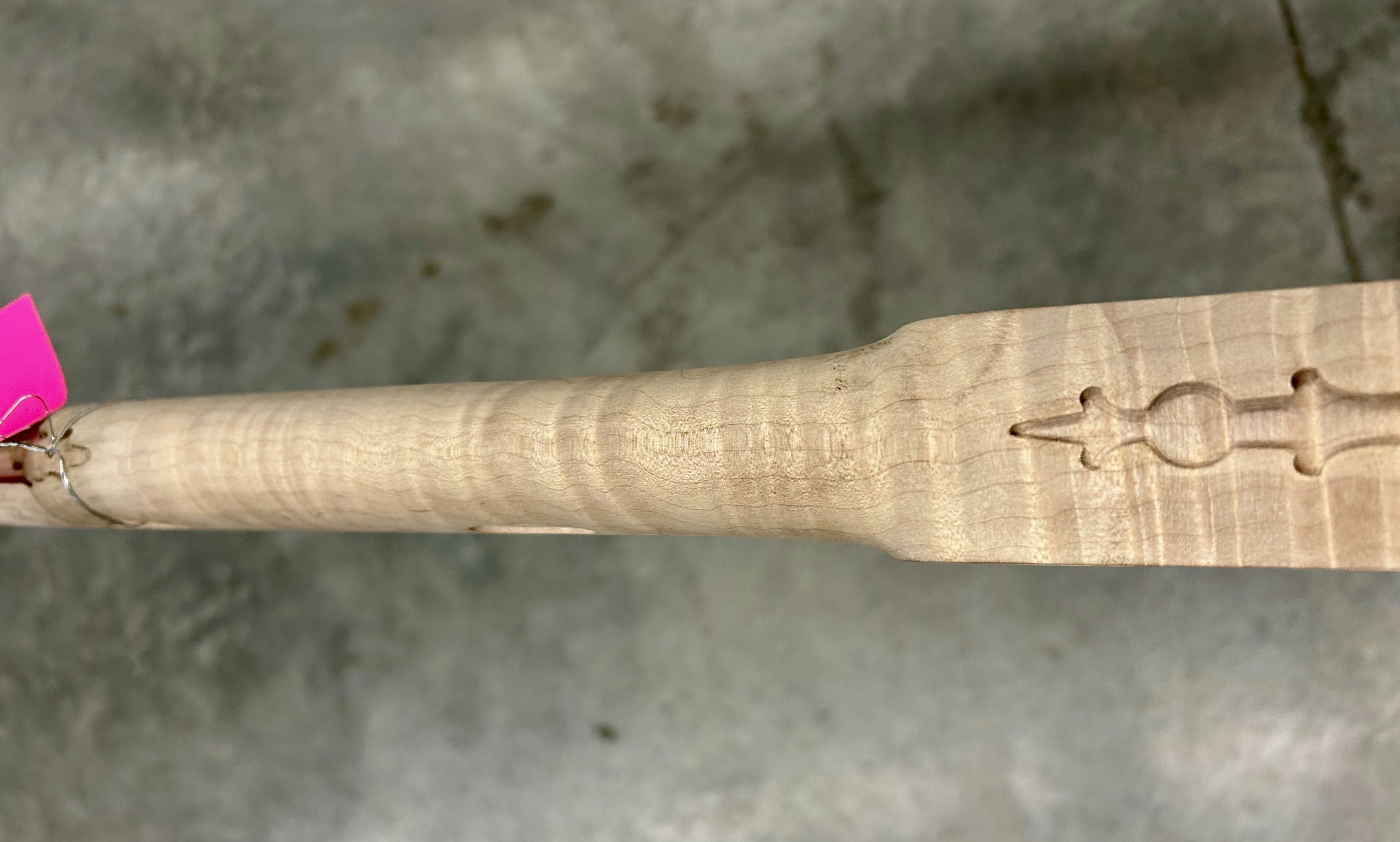 Extra fancy maple stock with pretty curl - small chip in by the nose and toe plate.