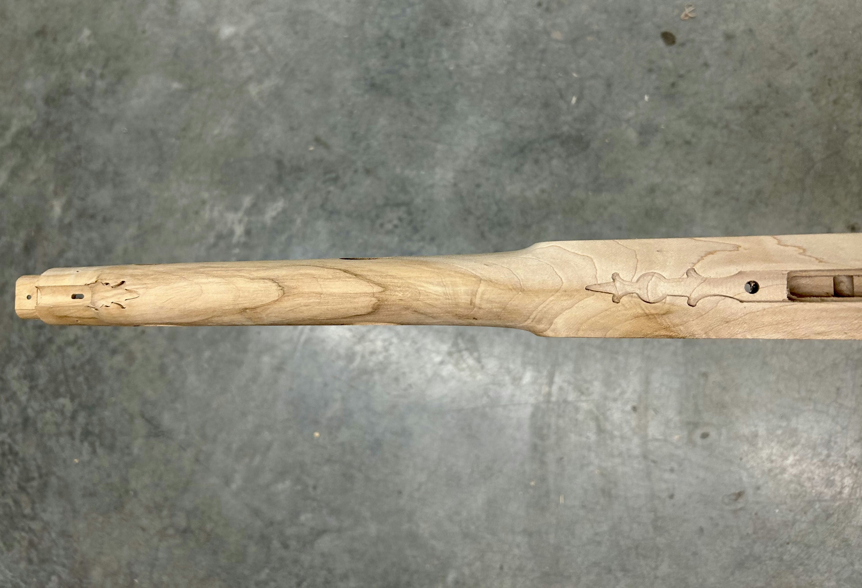Standard maple stock with interesting figure and discoloration.