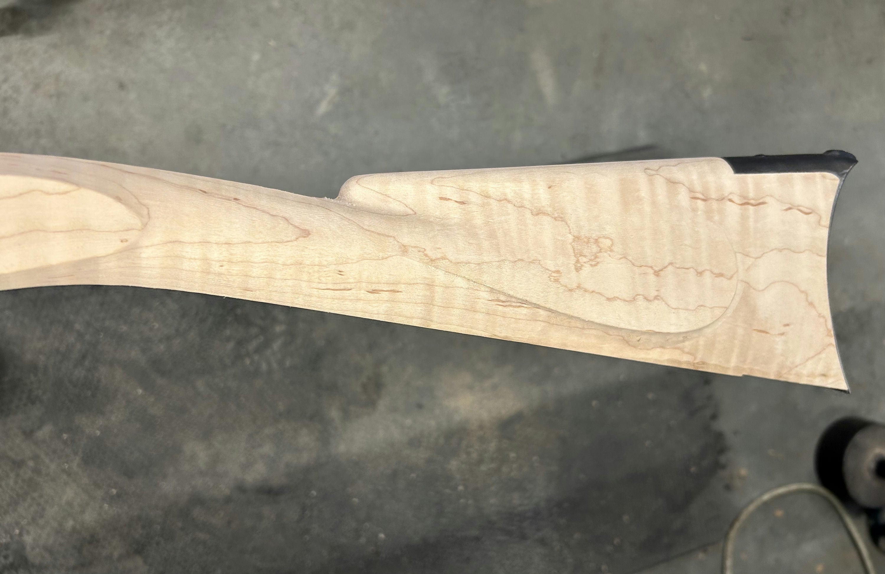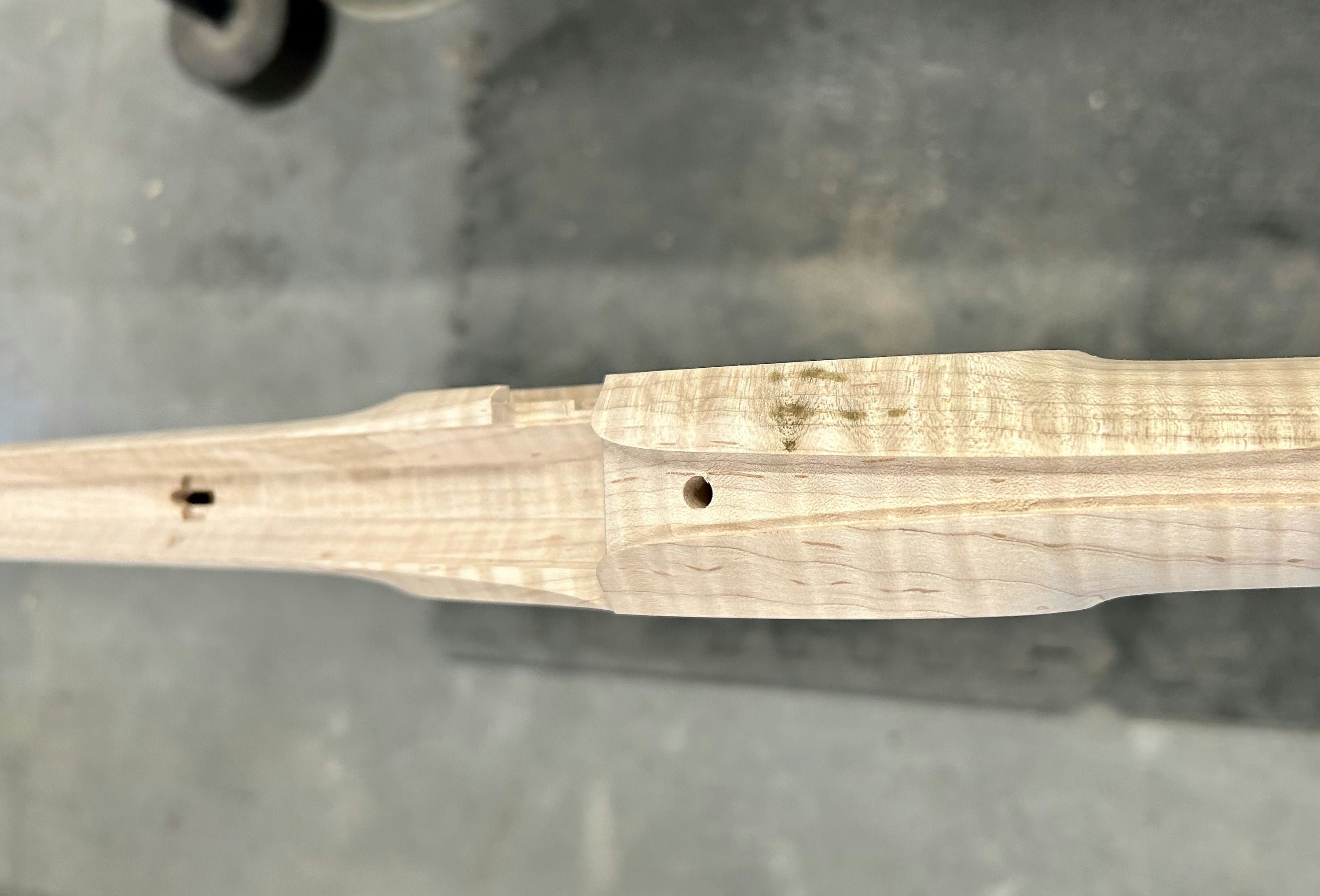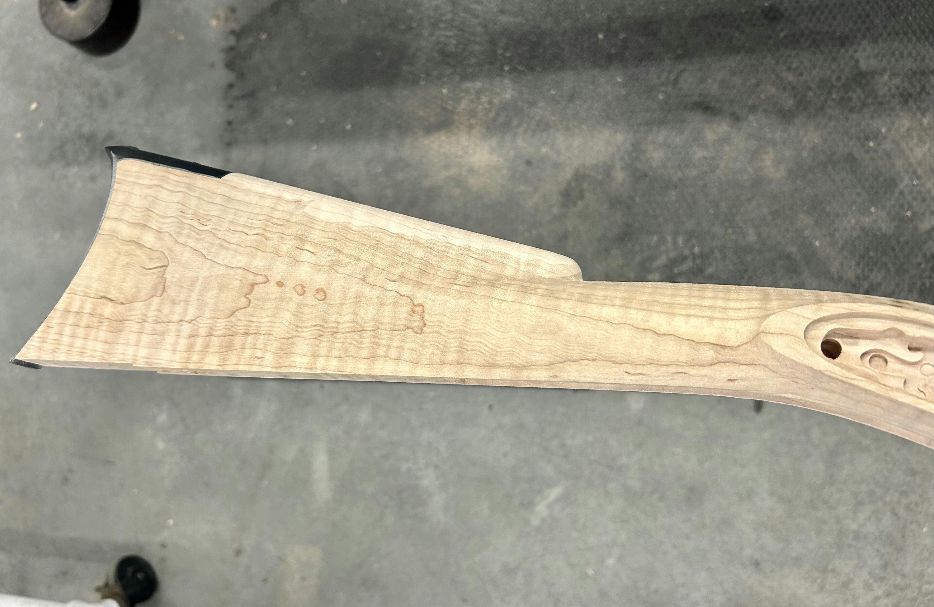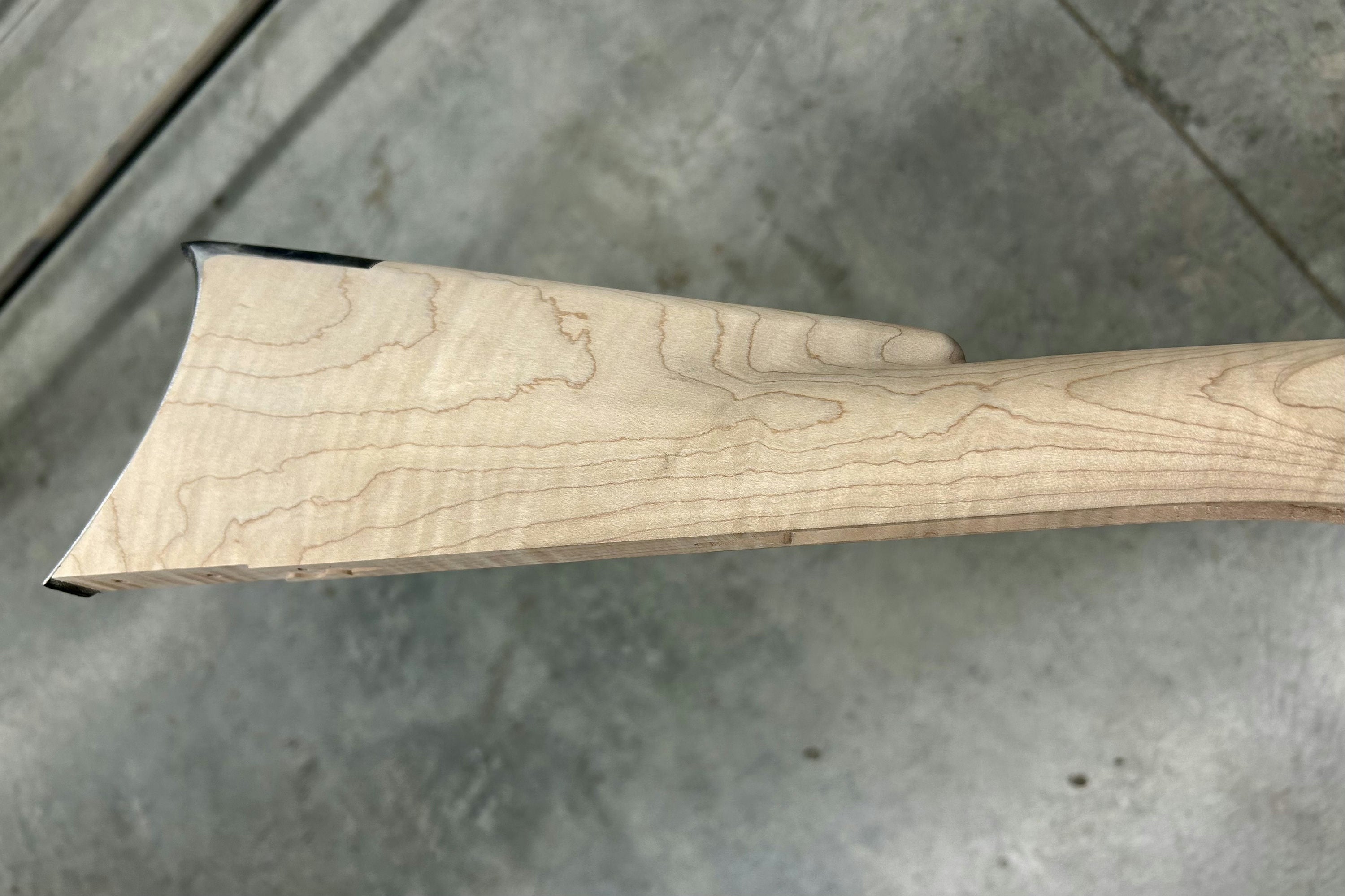 Extra fancy maple stock with staining/discoloration.