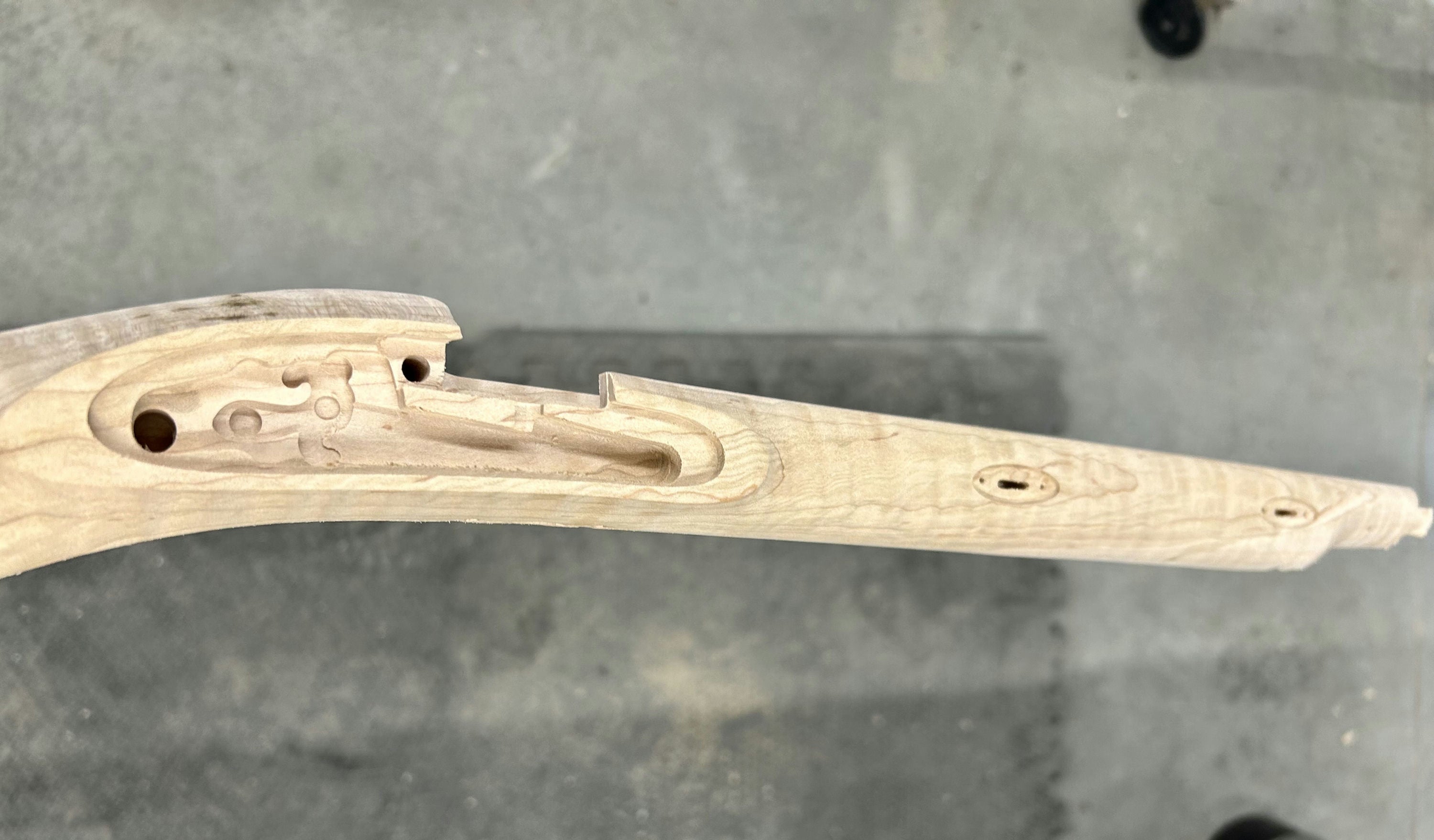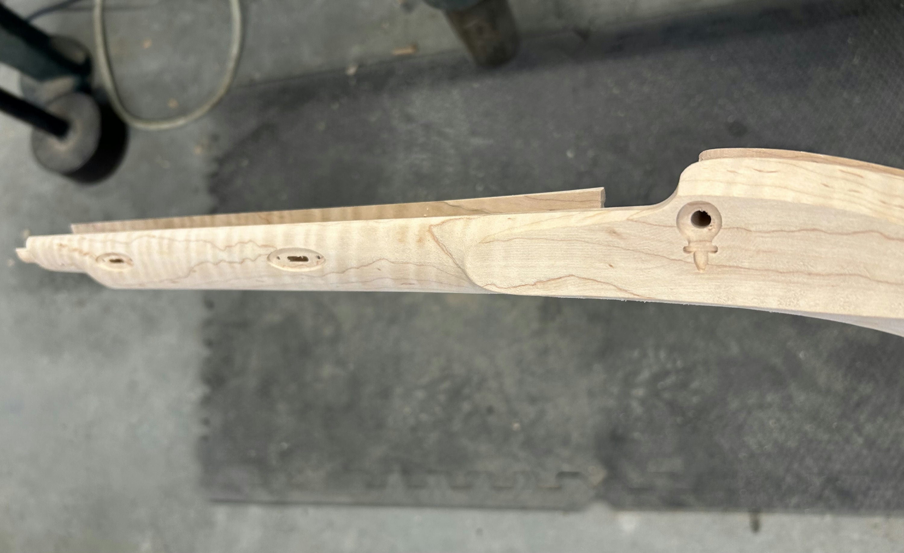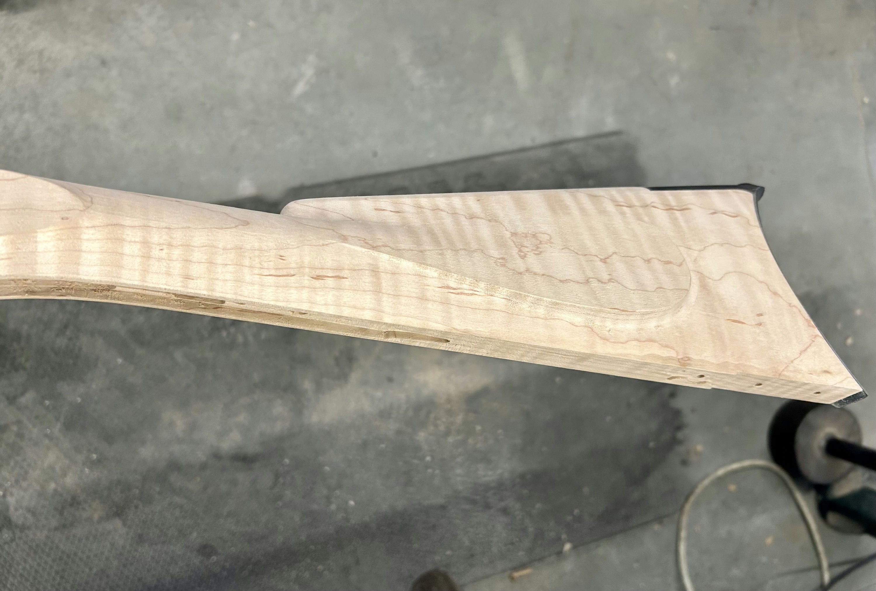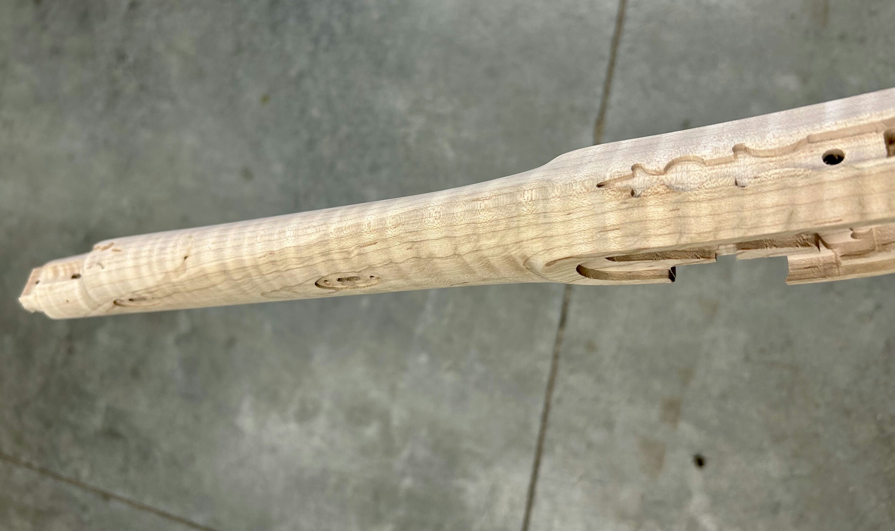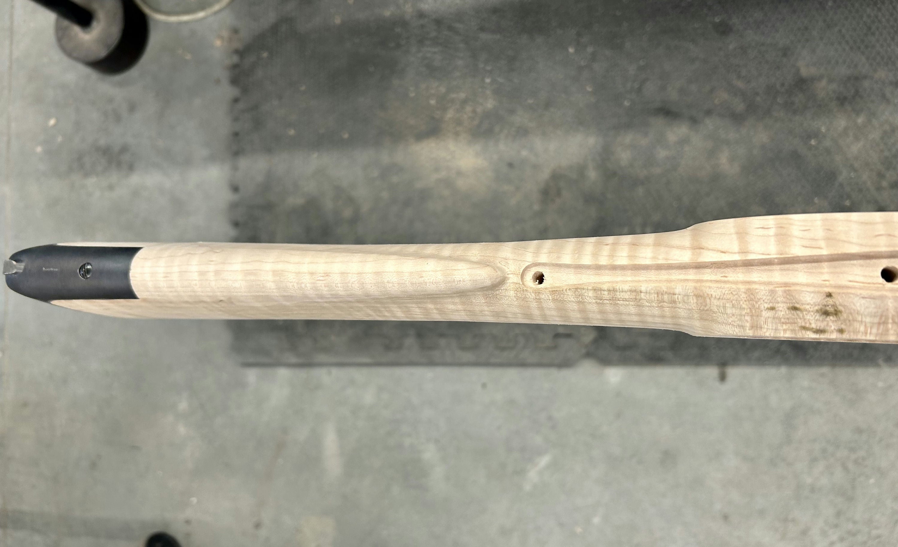 Extra fancy maple stock with staining/discoloration.