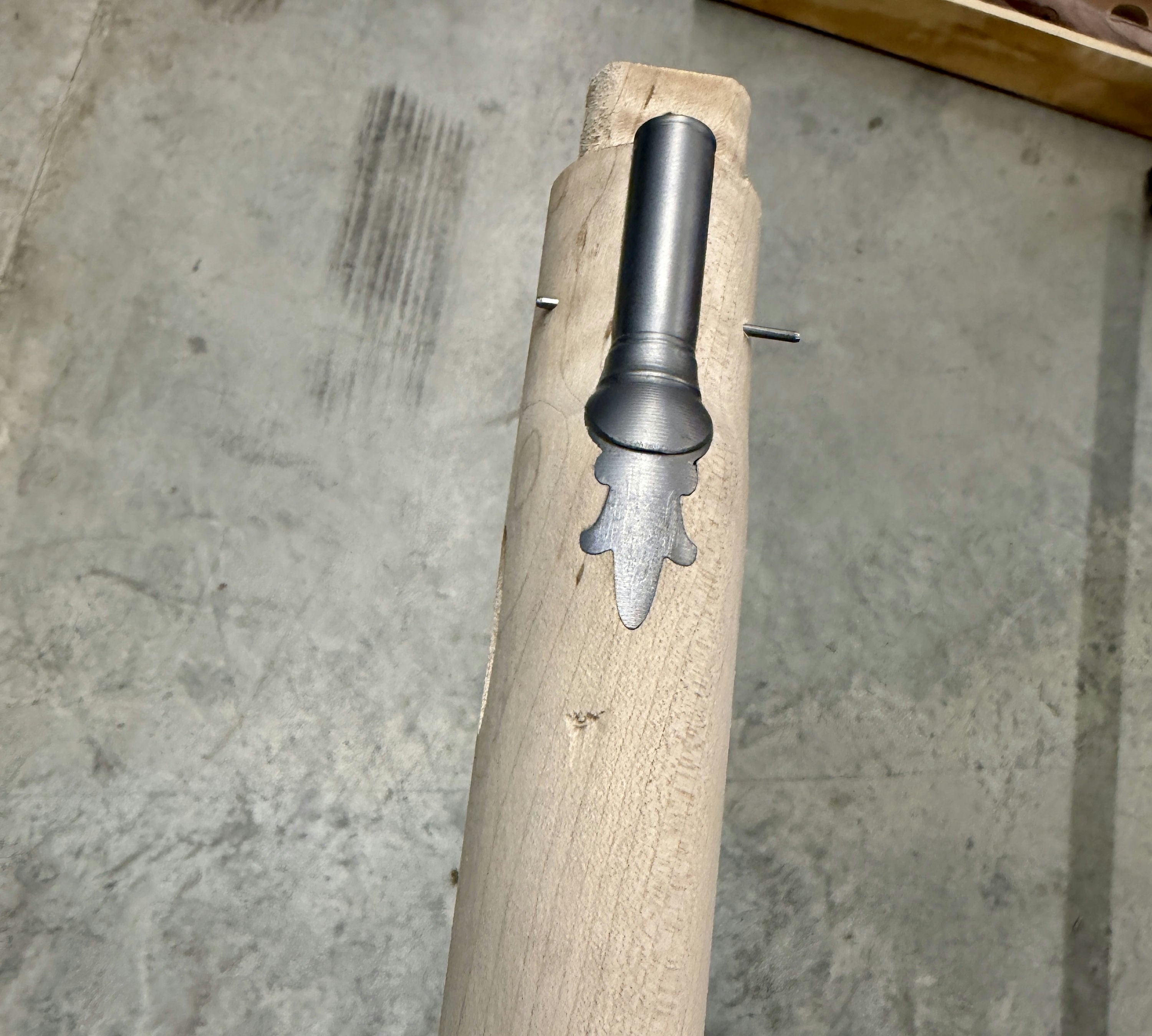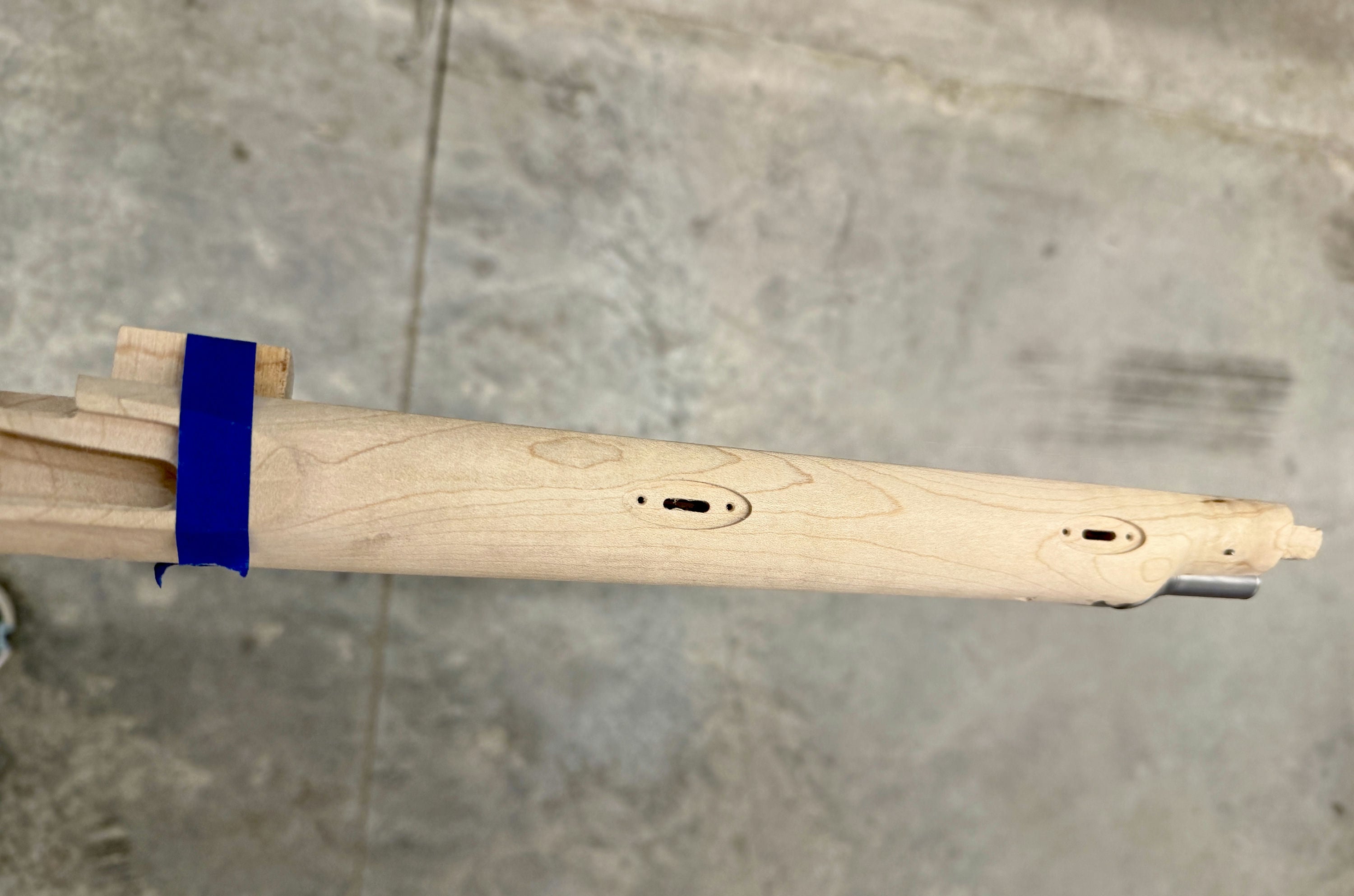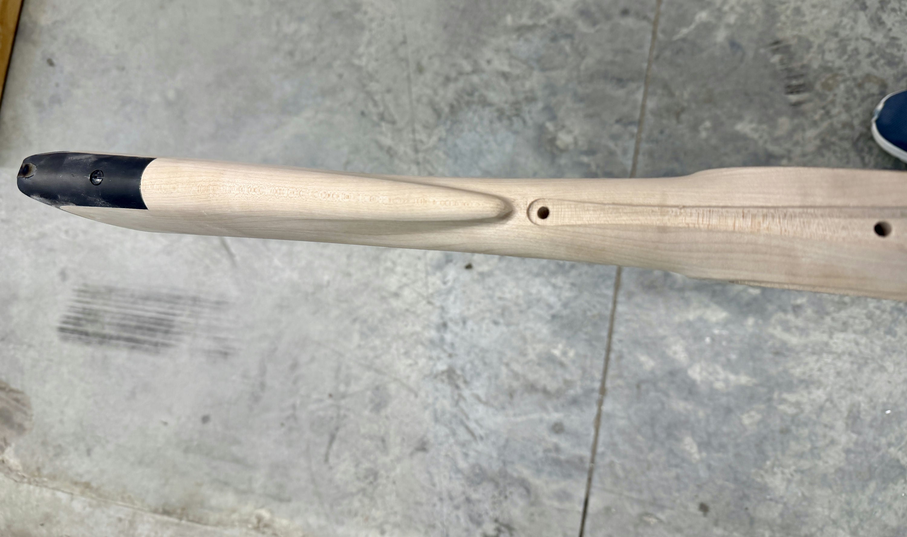 Standard maple stock with two small chips by the entry pipe - wood included for repair.