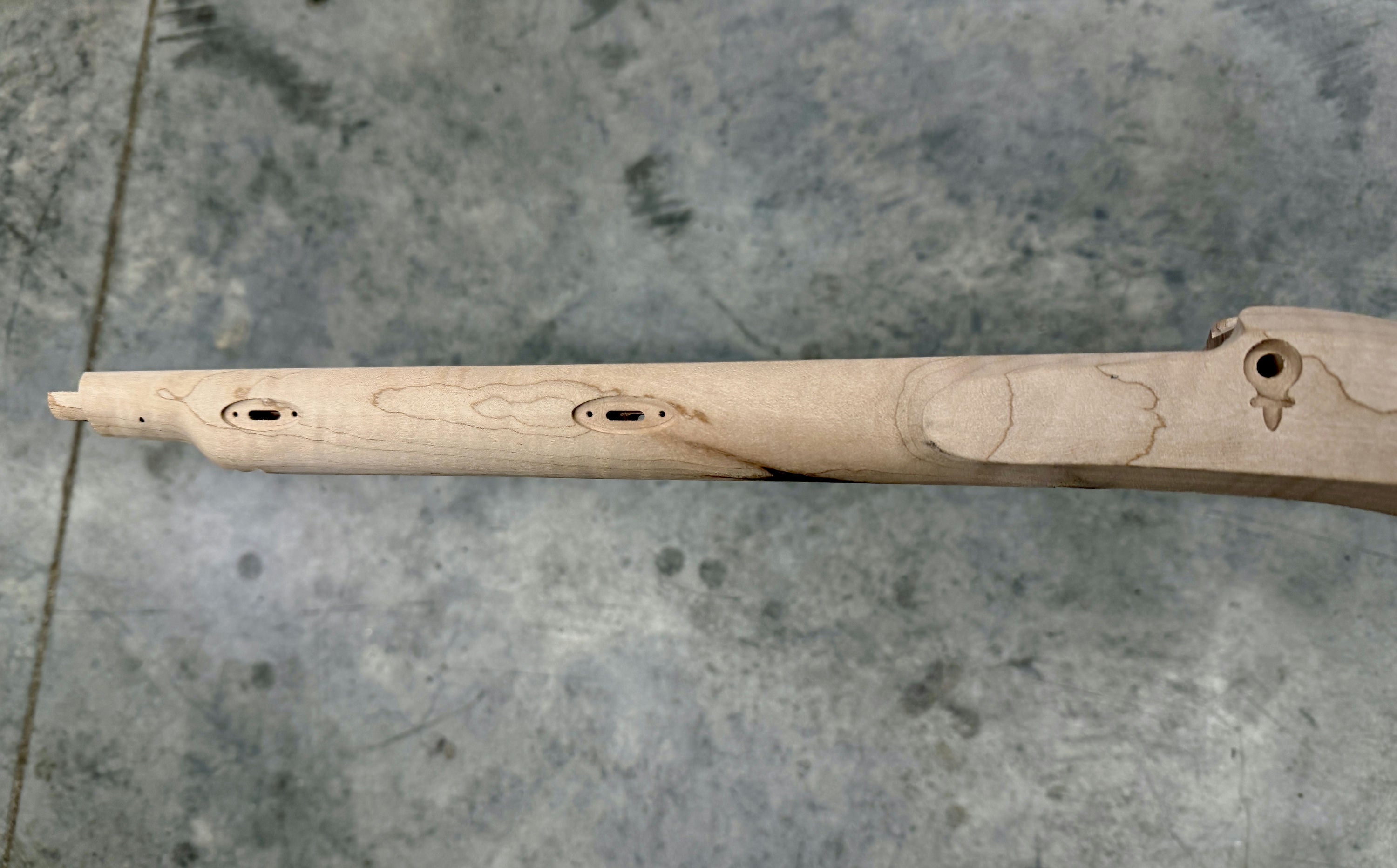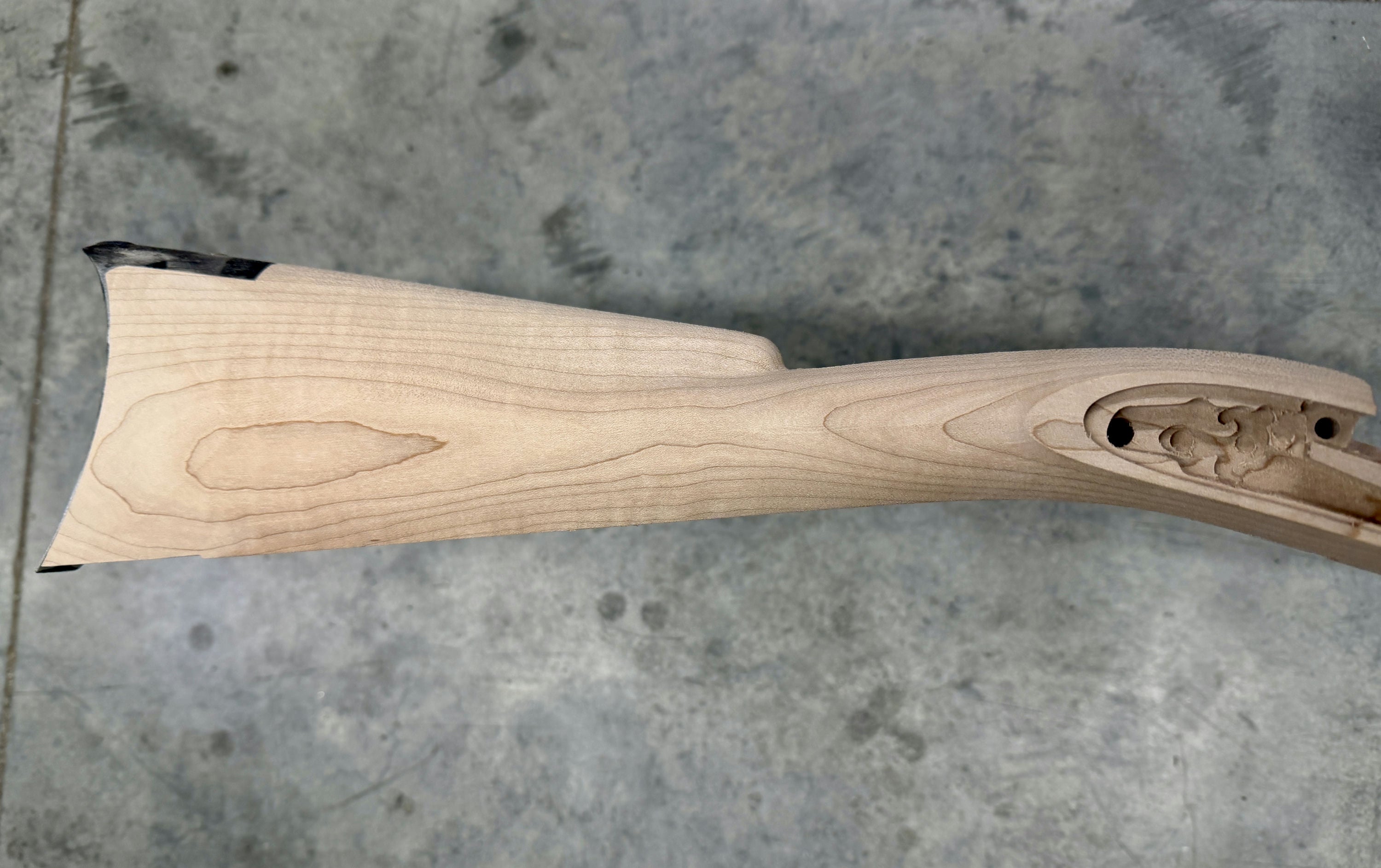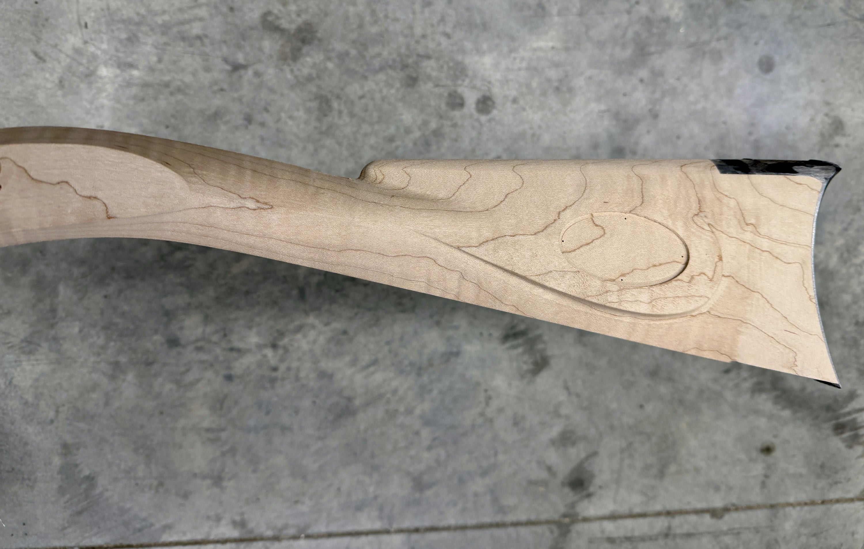 Standard maple stock with the German silver inlay package. Stock has a filled bark inclusion on the forestock that has been filled and is stable