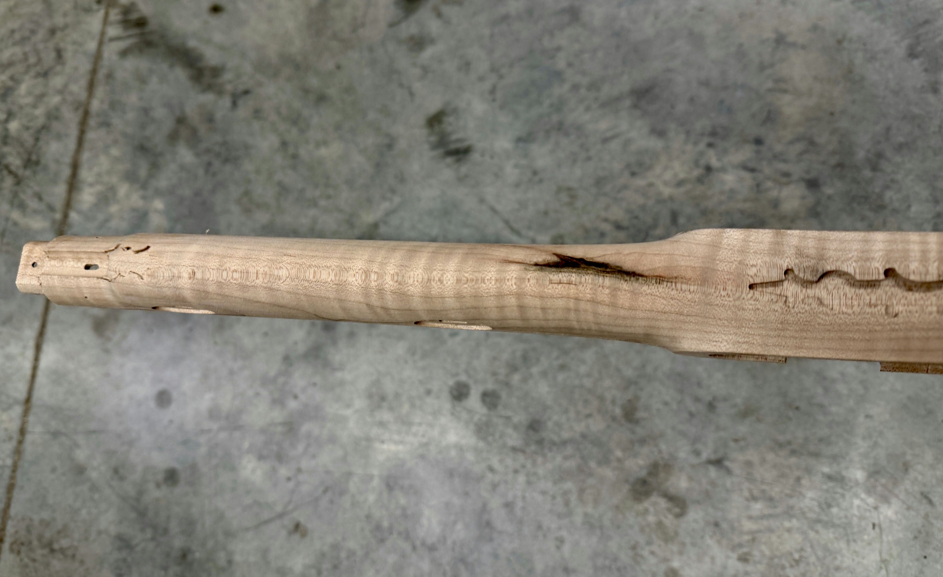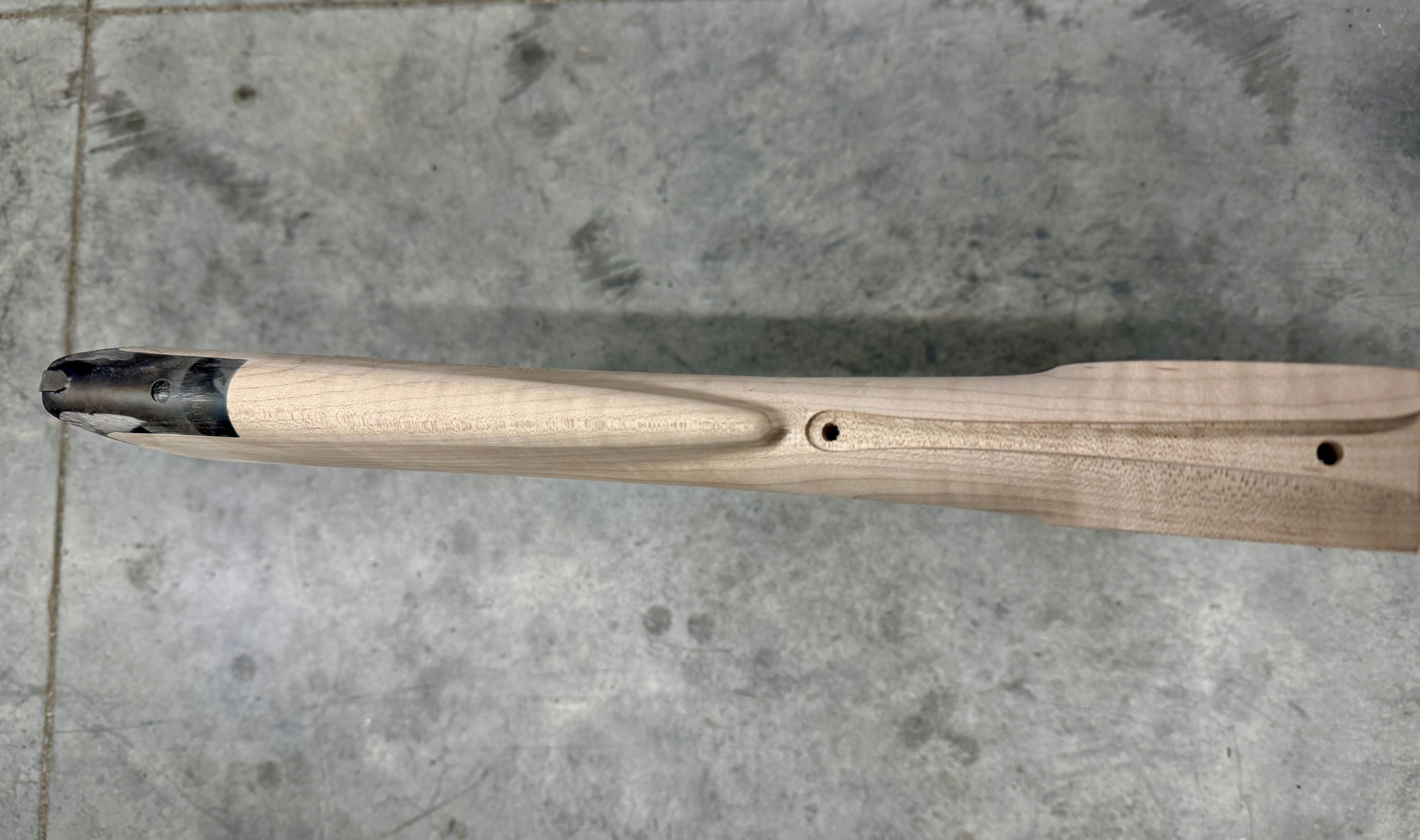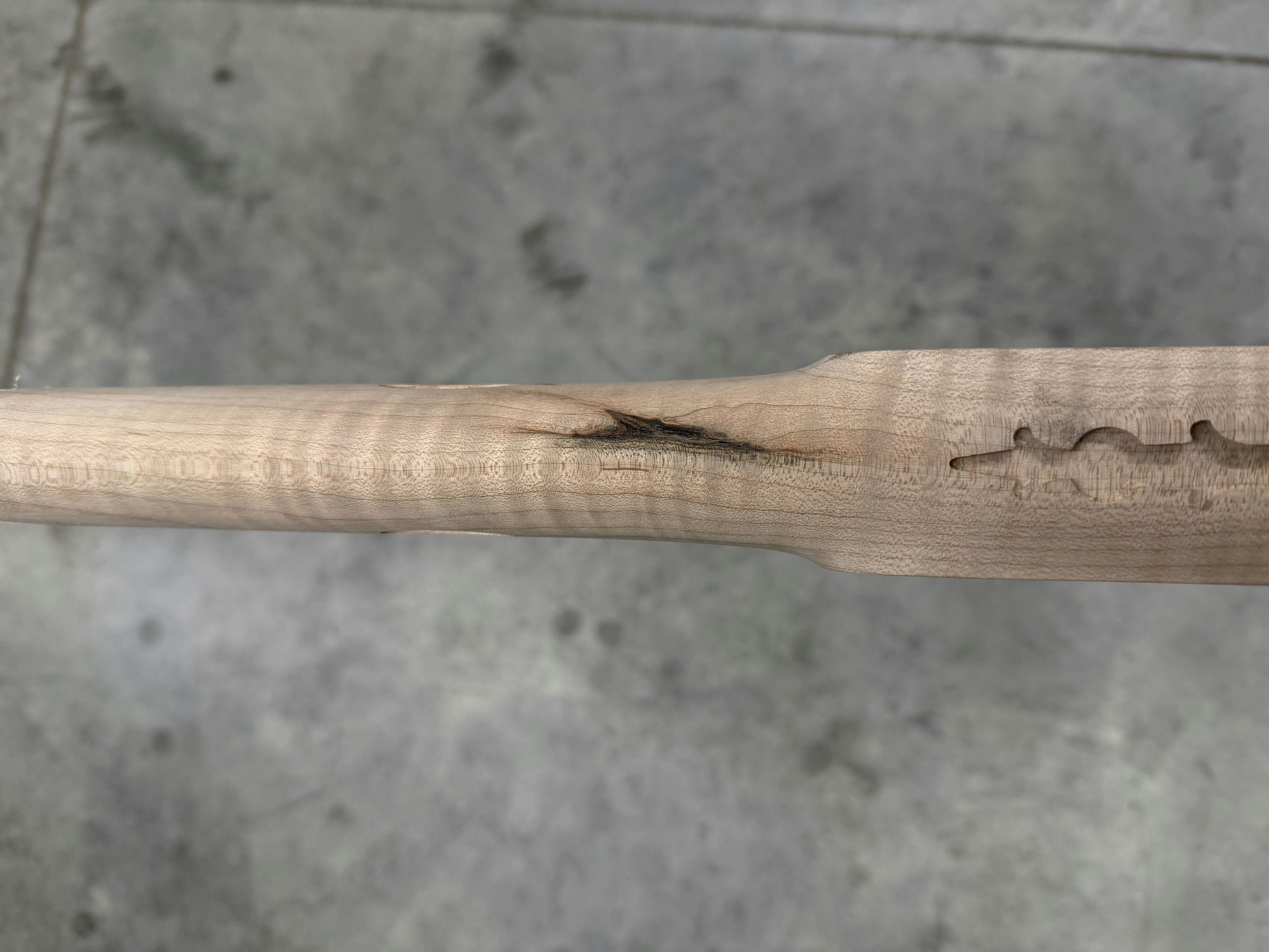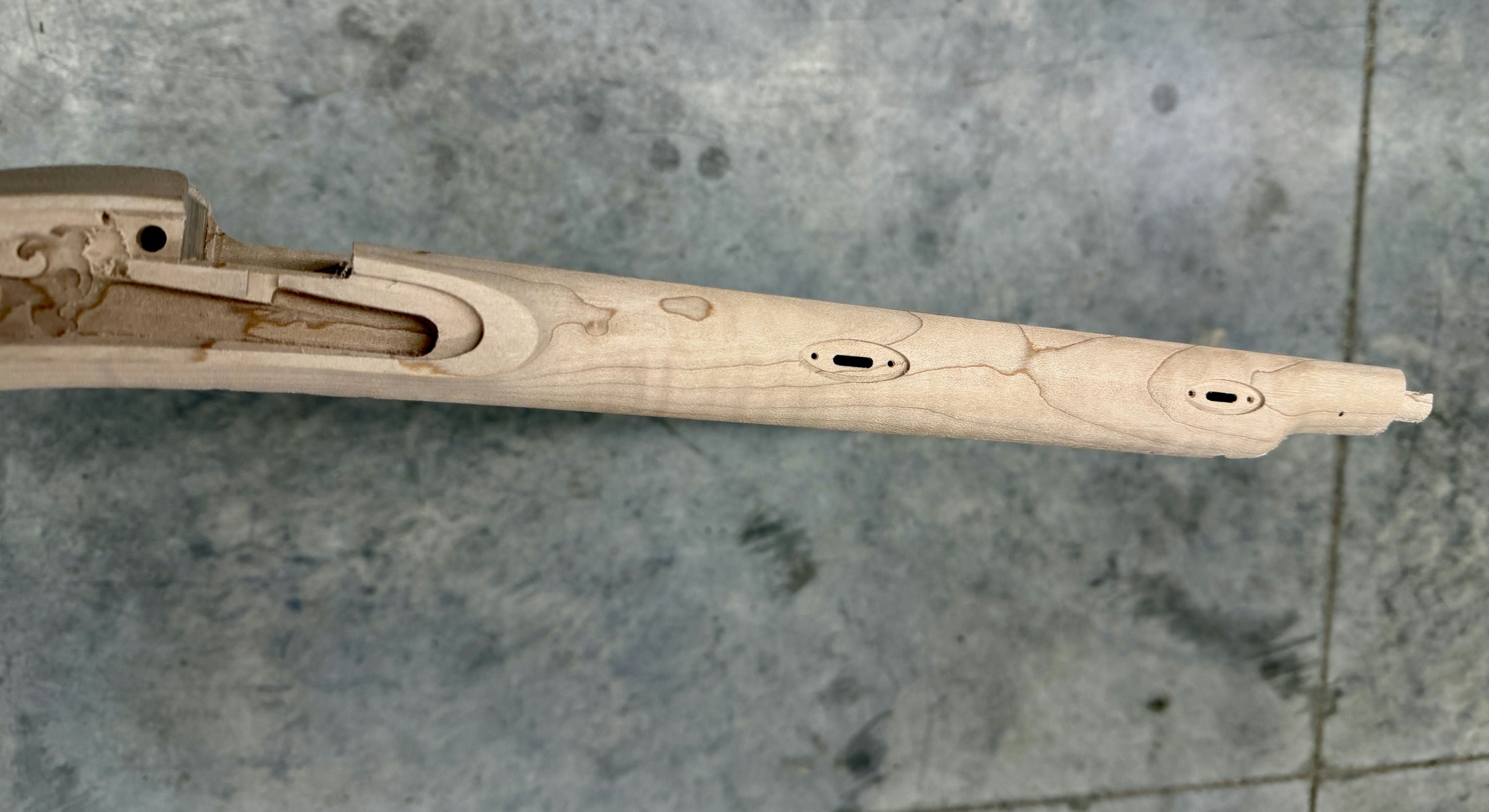 Standard maple stock with the German silver inlay package. Stock has a filled bark inclusion on the forestock that has been filled and is stable