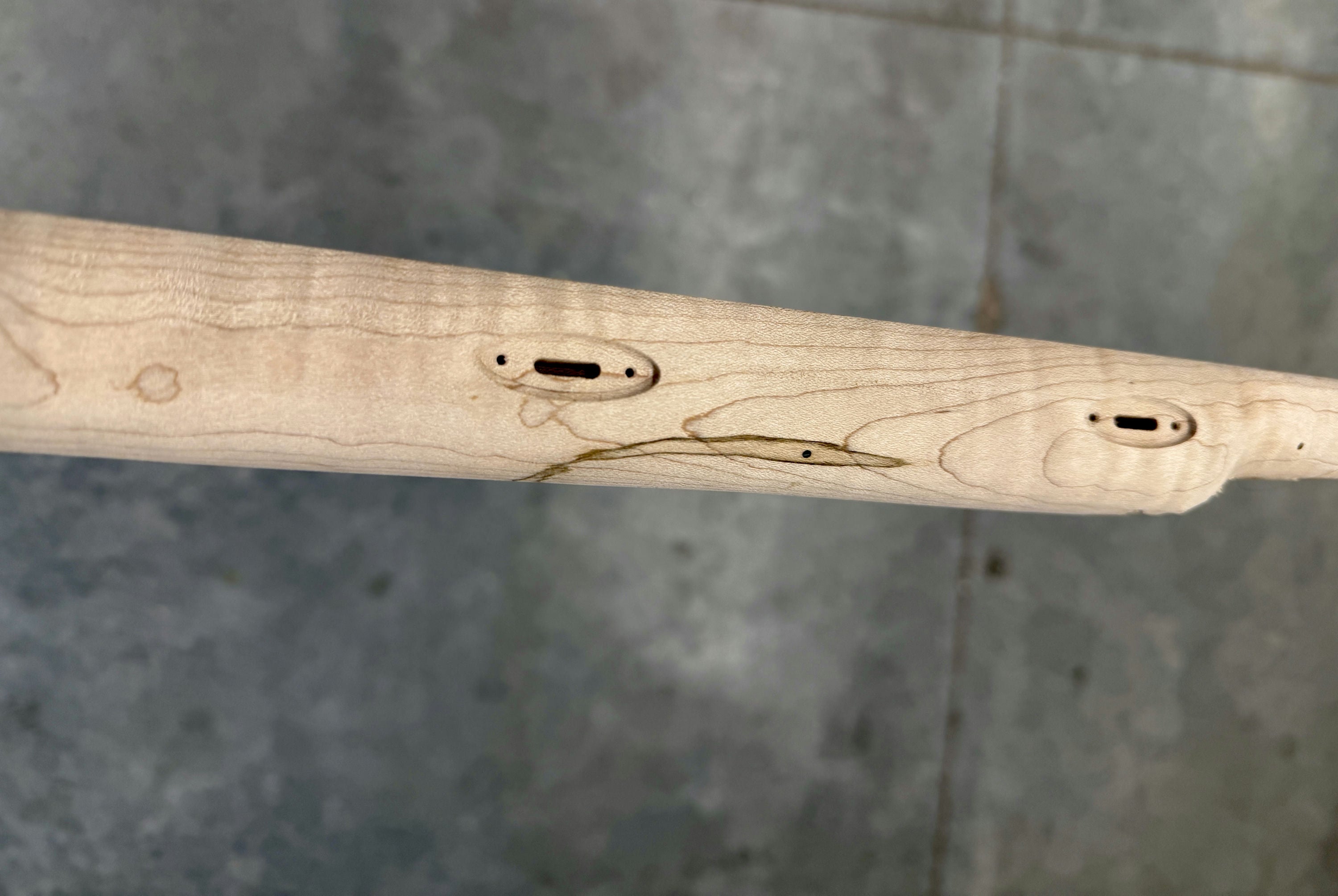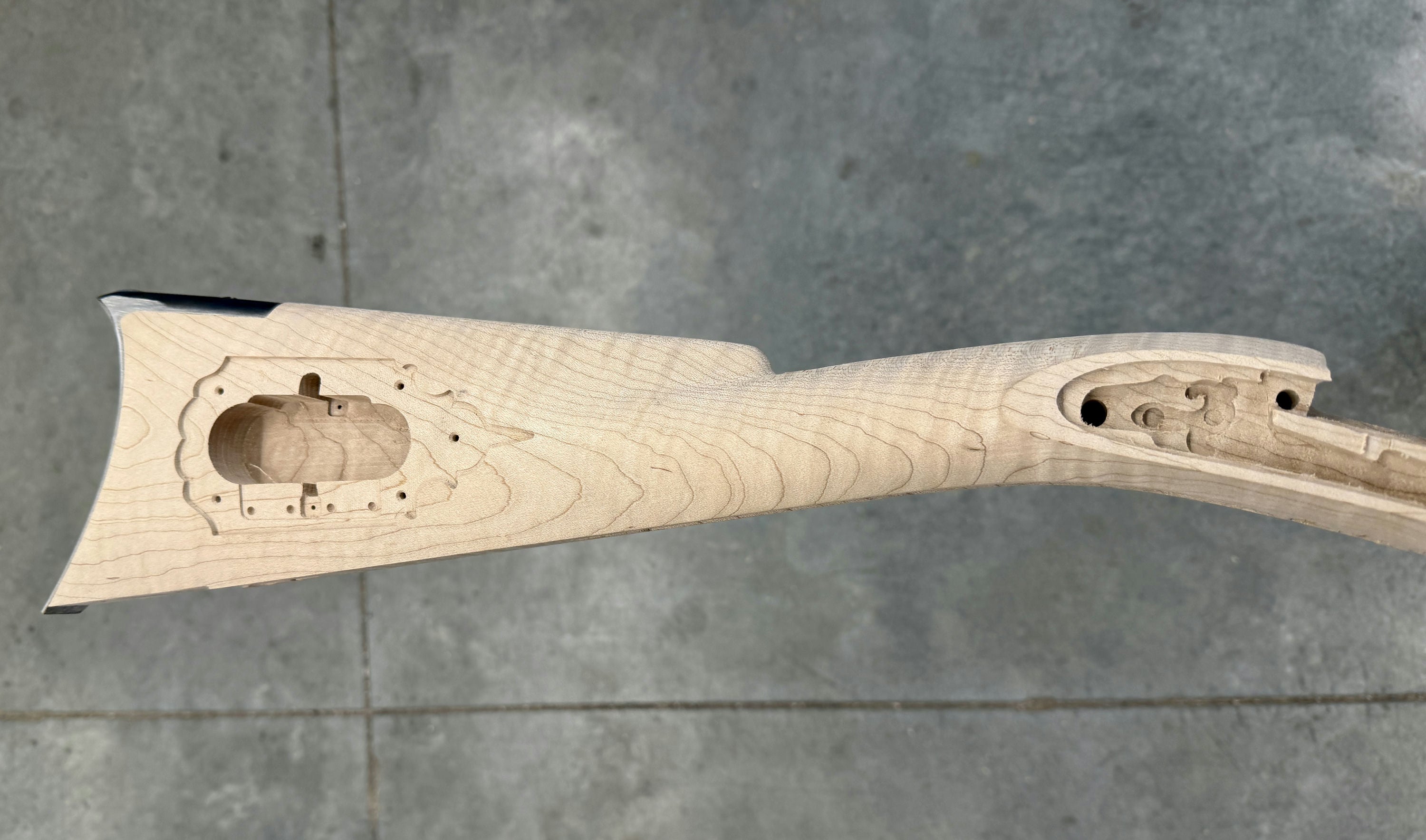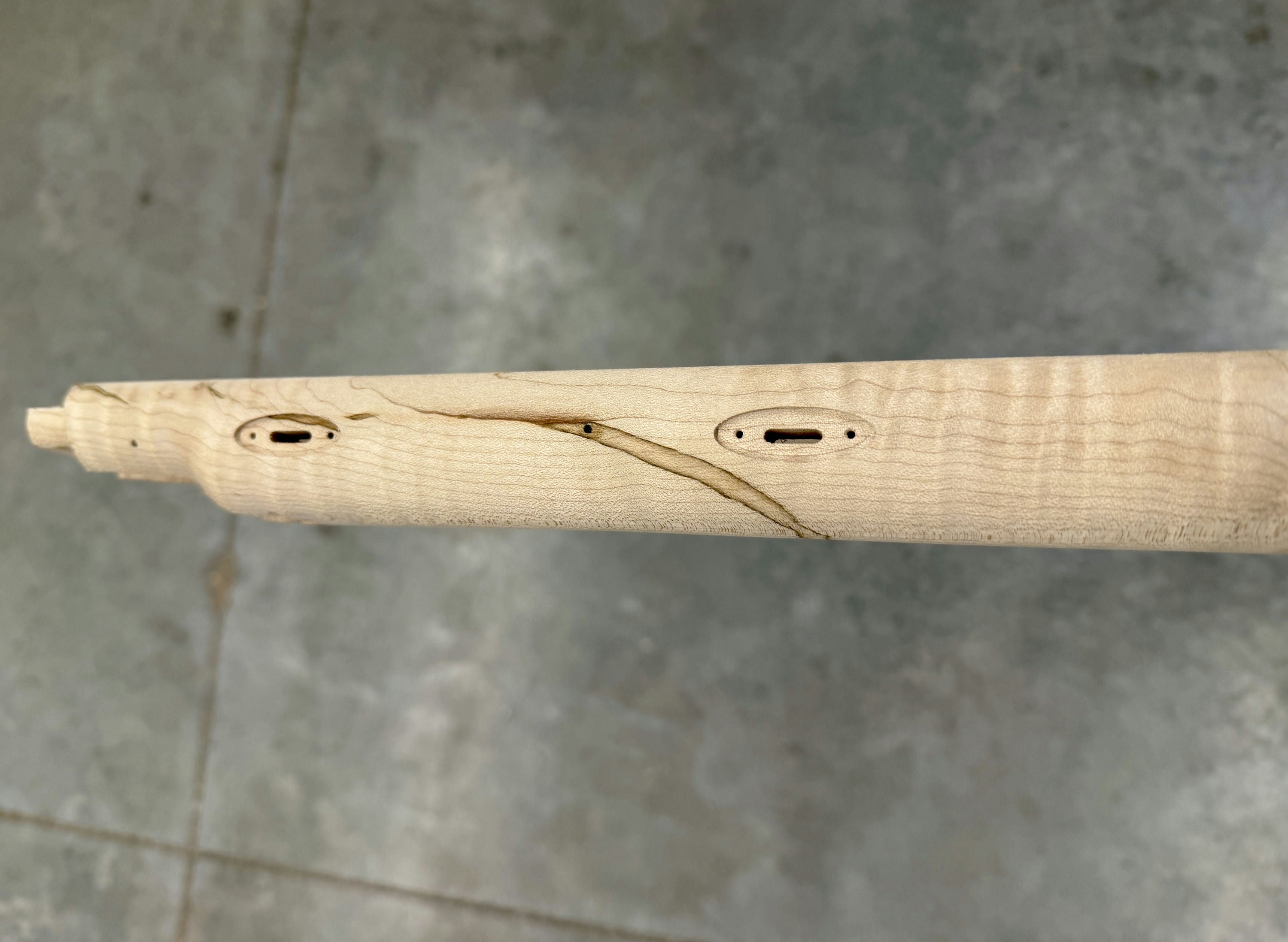 Extra fancy maple stock with a worm stain and filled hole (Patch box and Inlay Package Included)