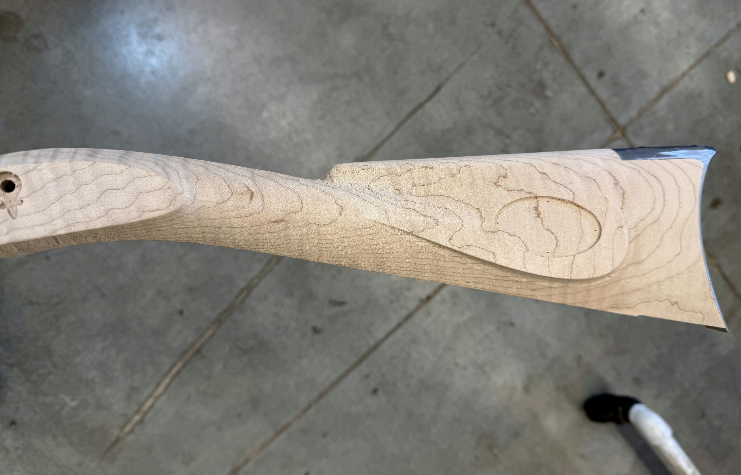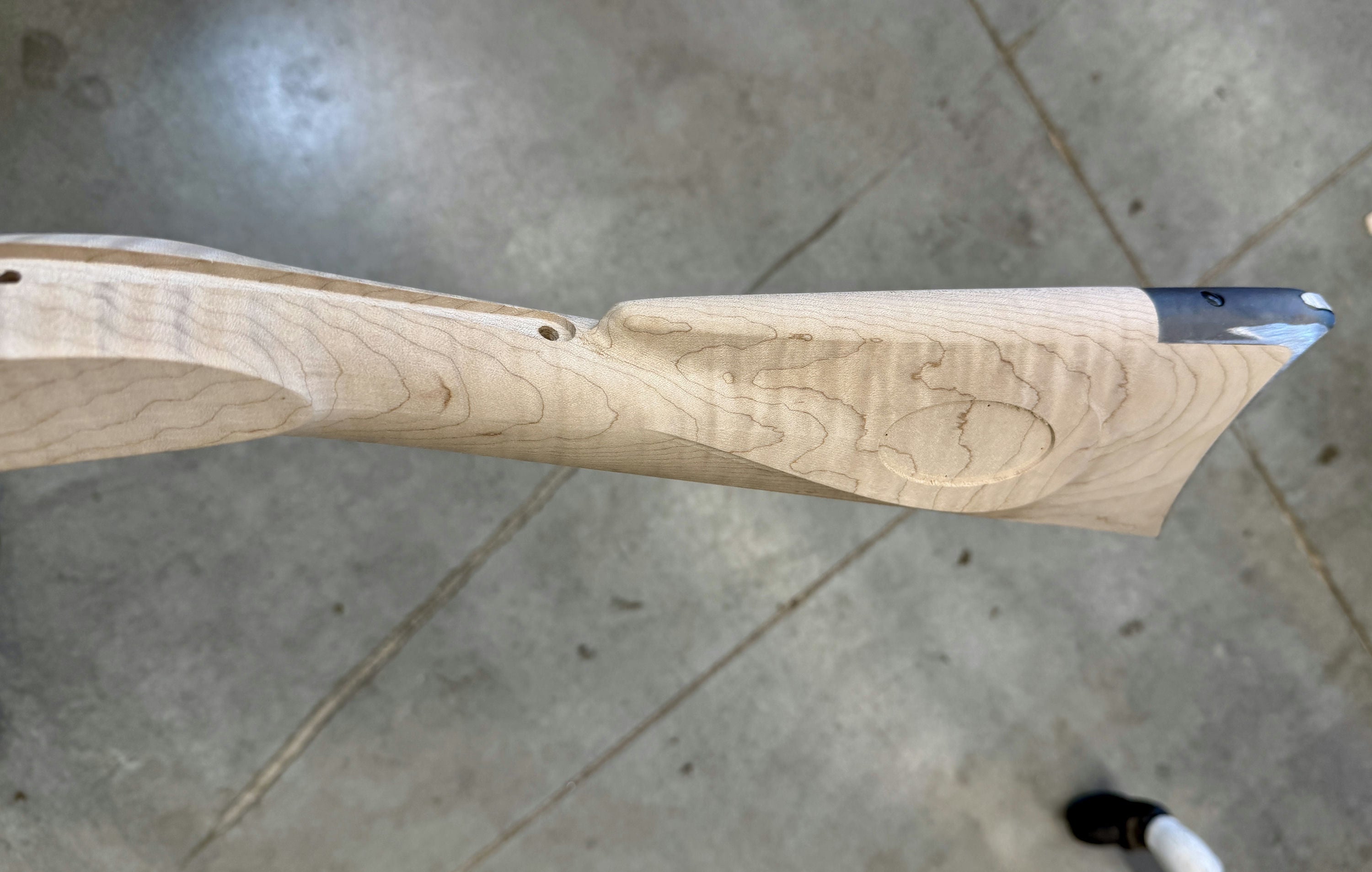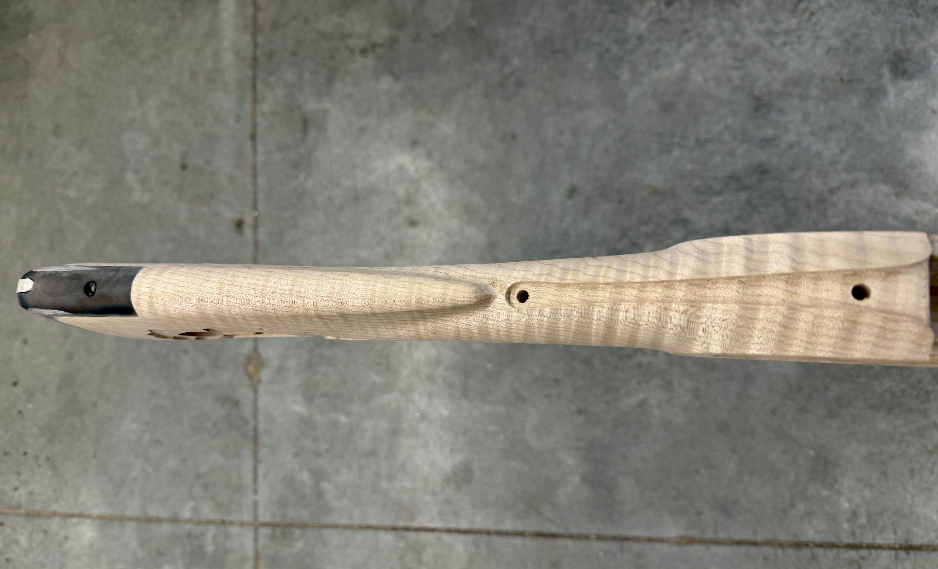 Extra fancy maple stock with a worm stain and filled hole (Patch box and Inlay Package Included)