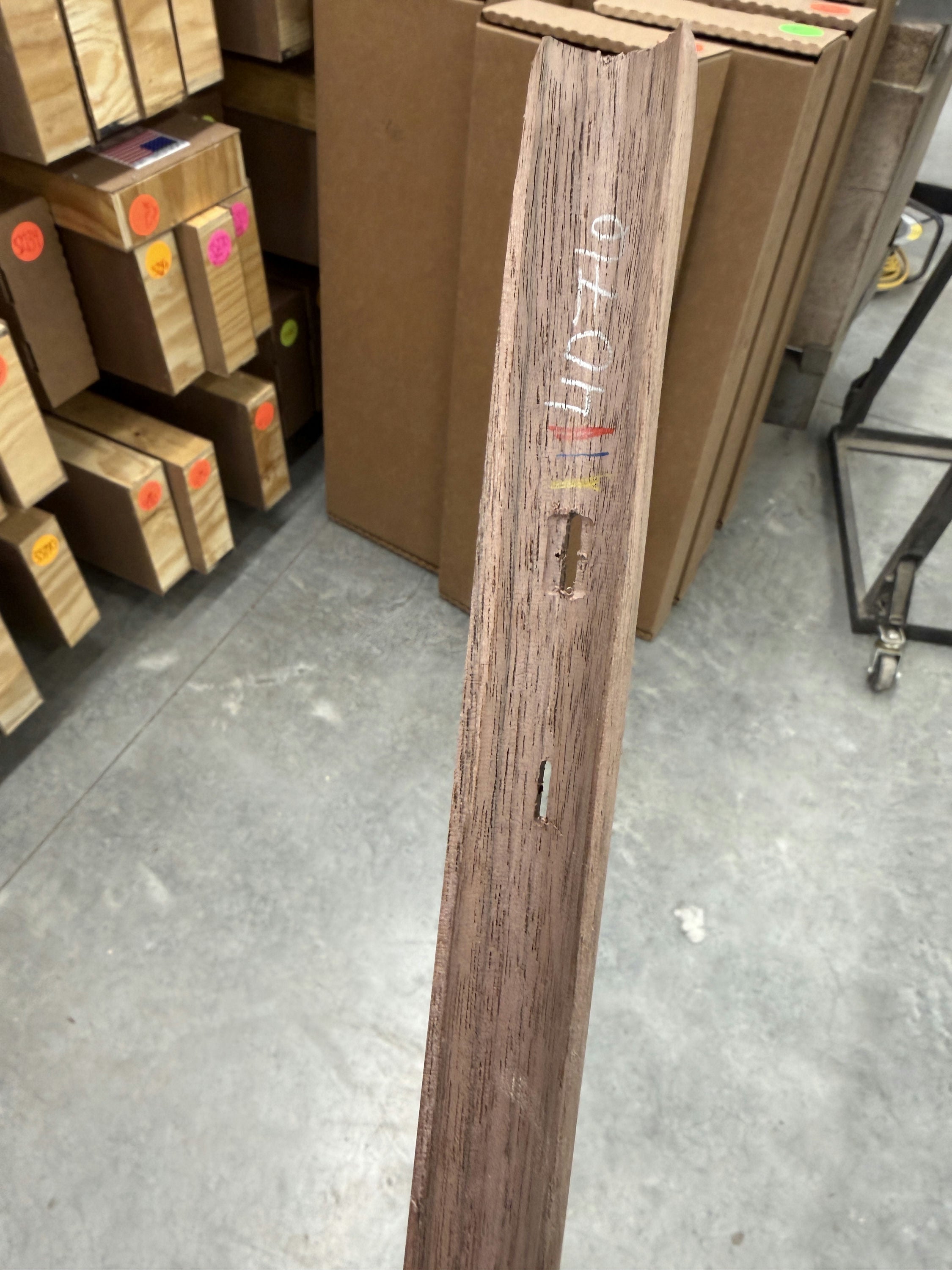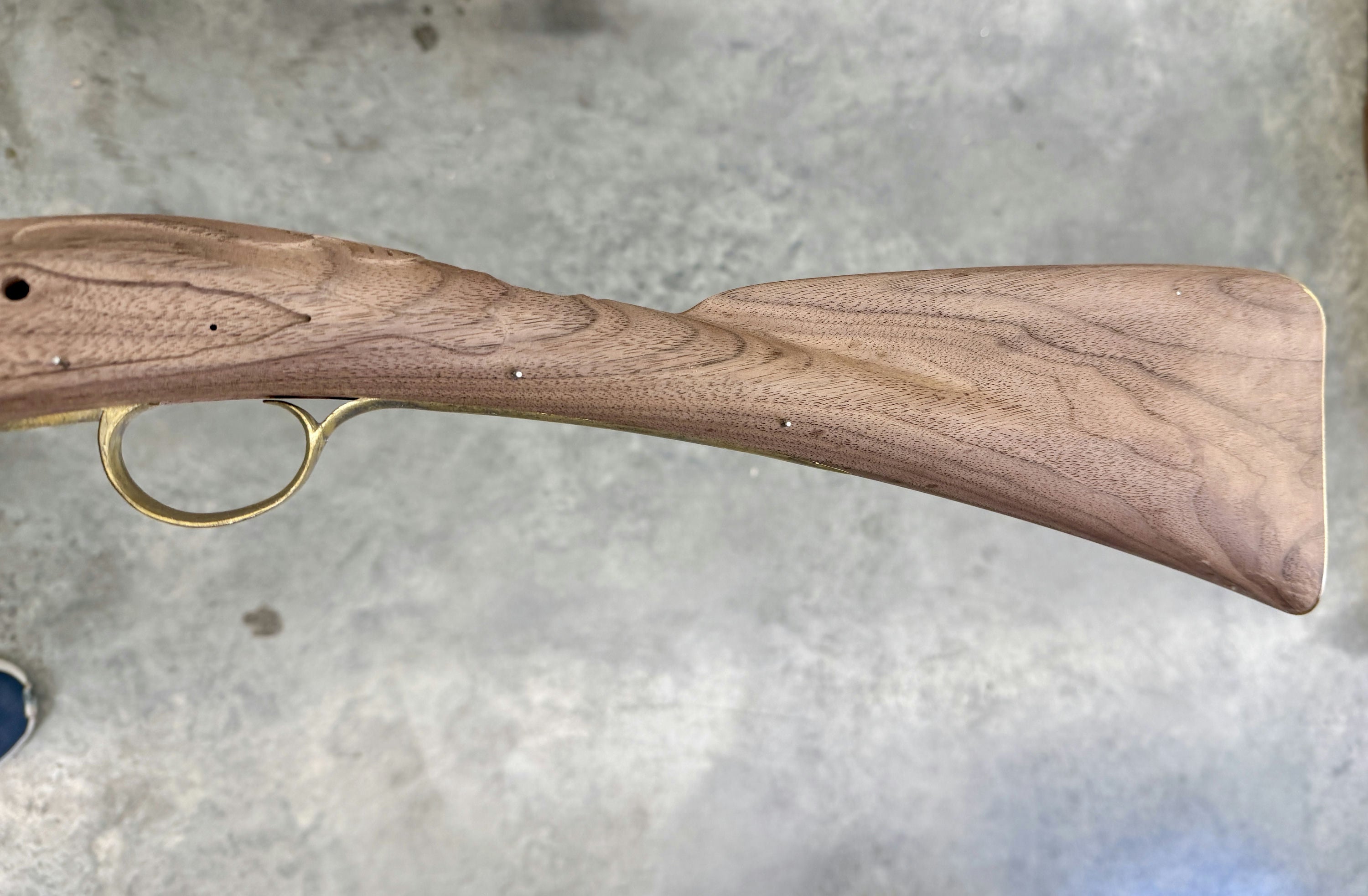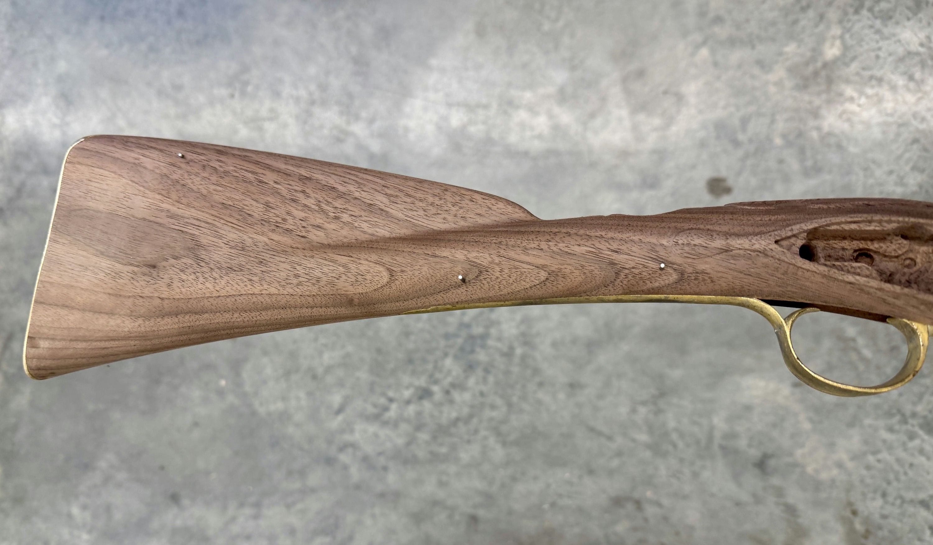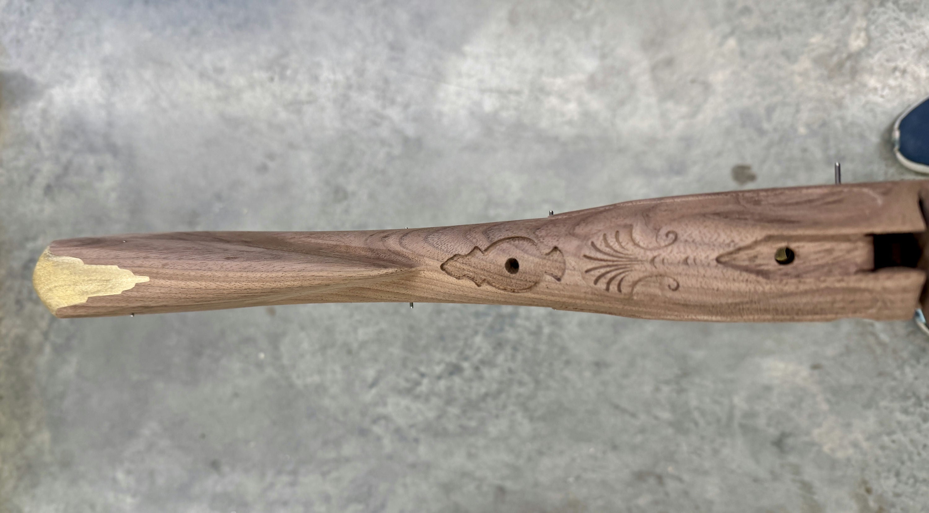 Walnut stock with a tear in the barrel channel by the nose - wood included for the repair.
