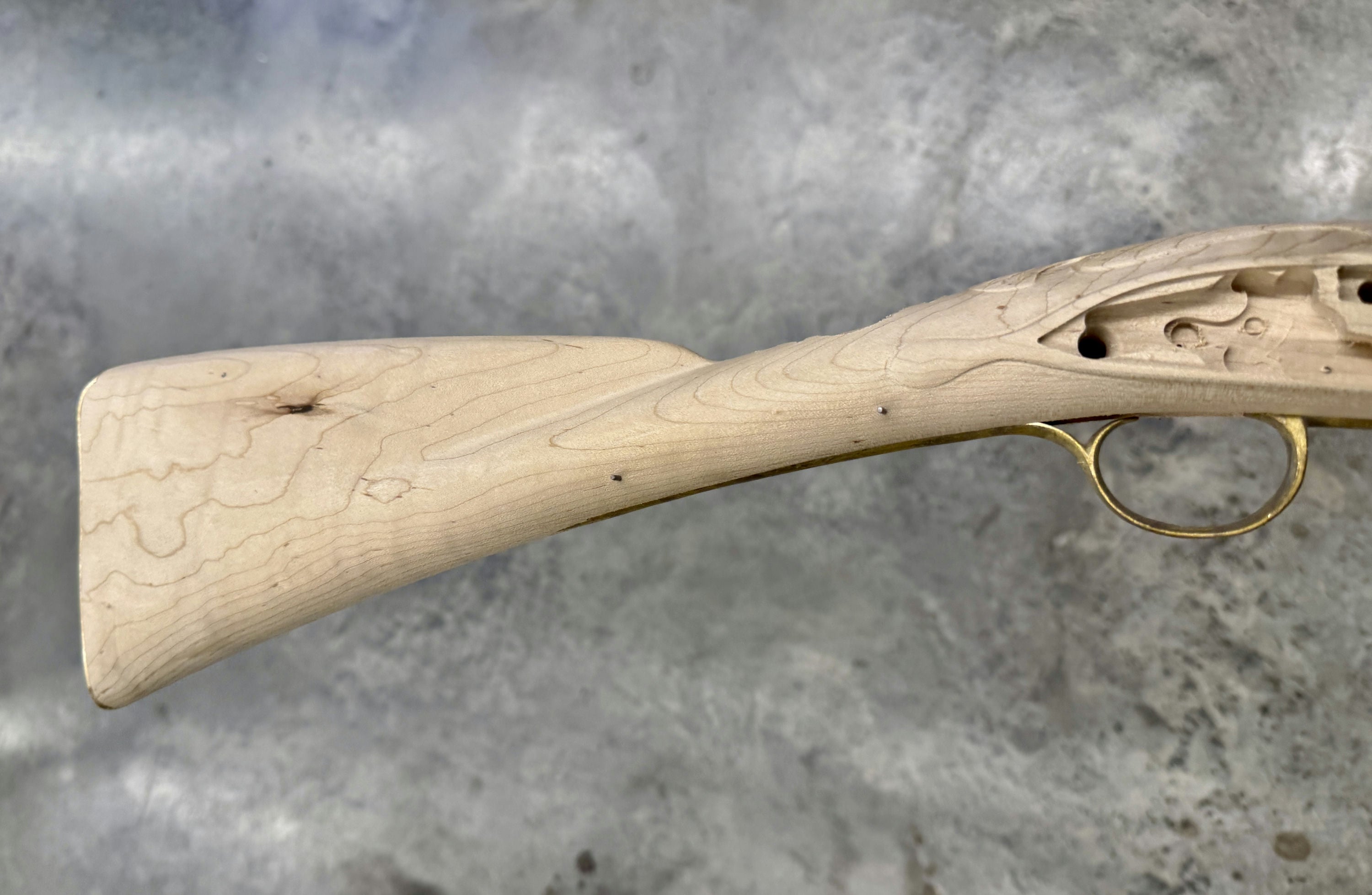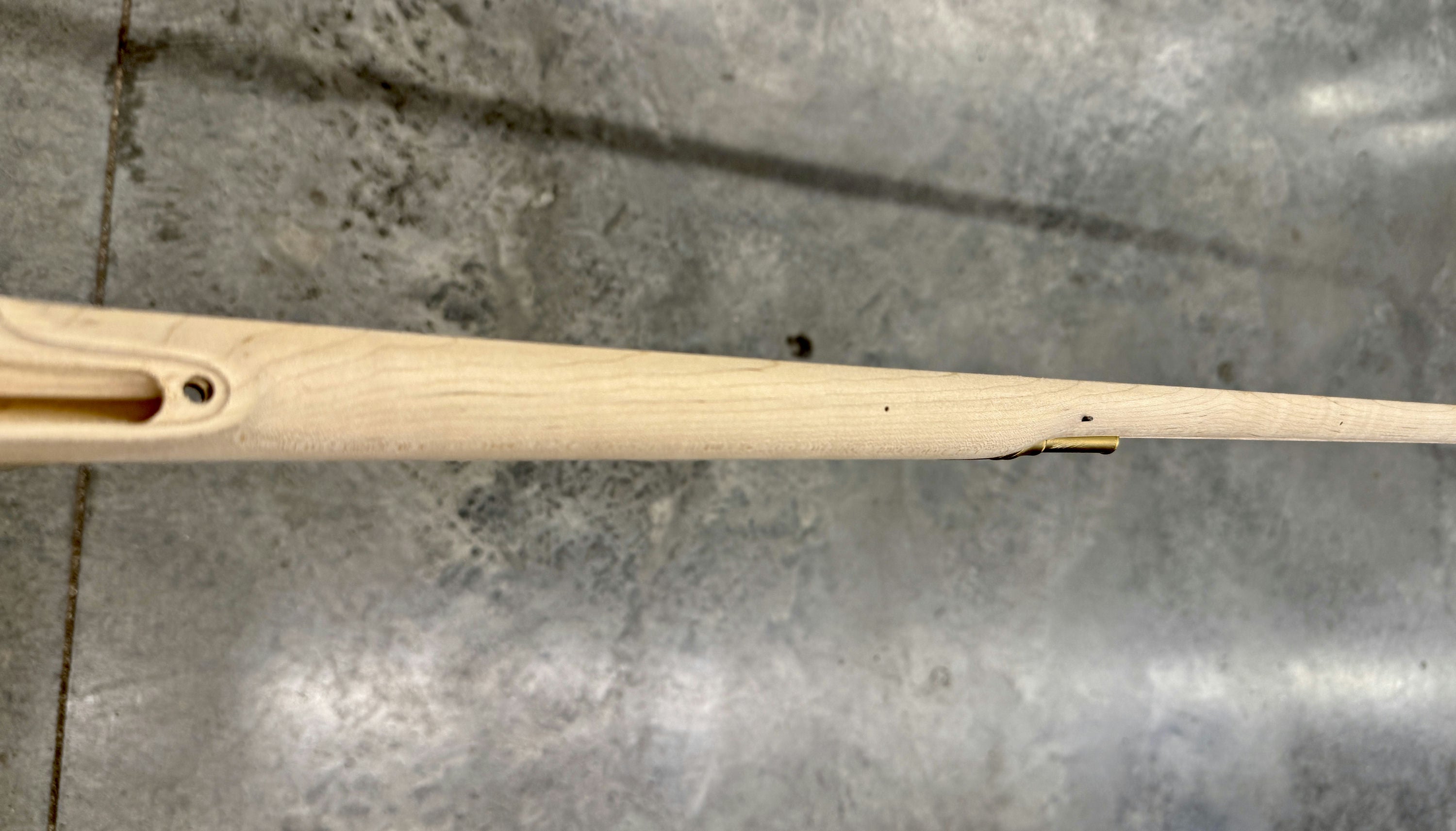 Standard maple stock with a small stain on the butt stock.