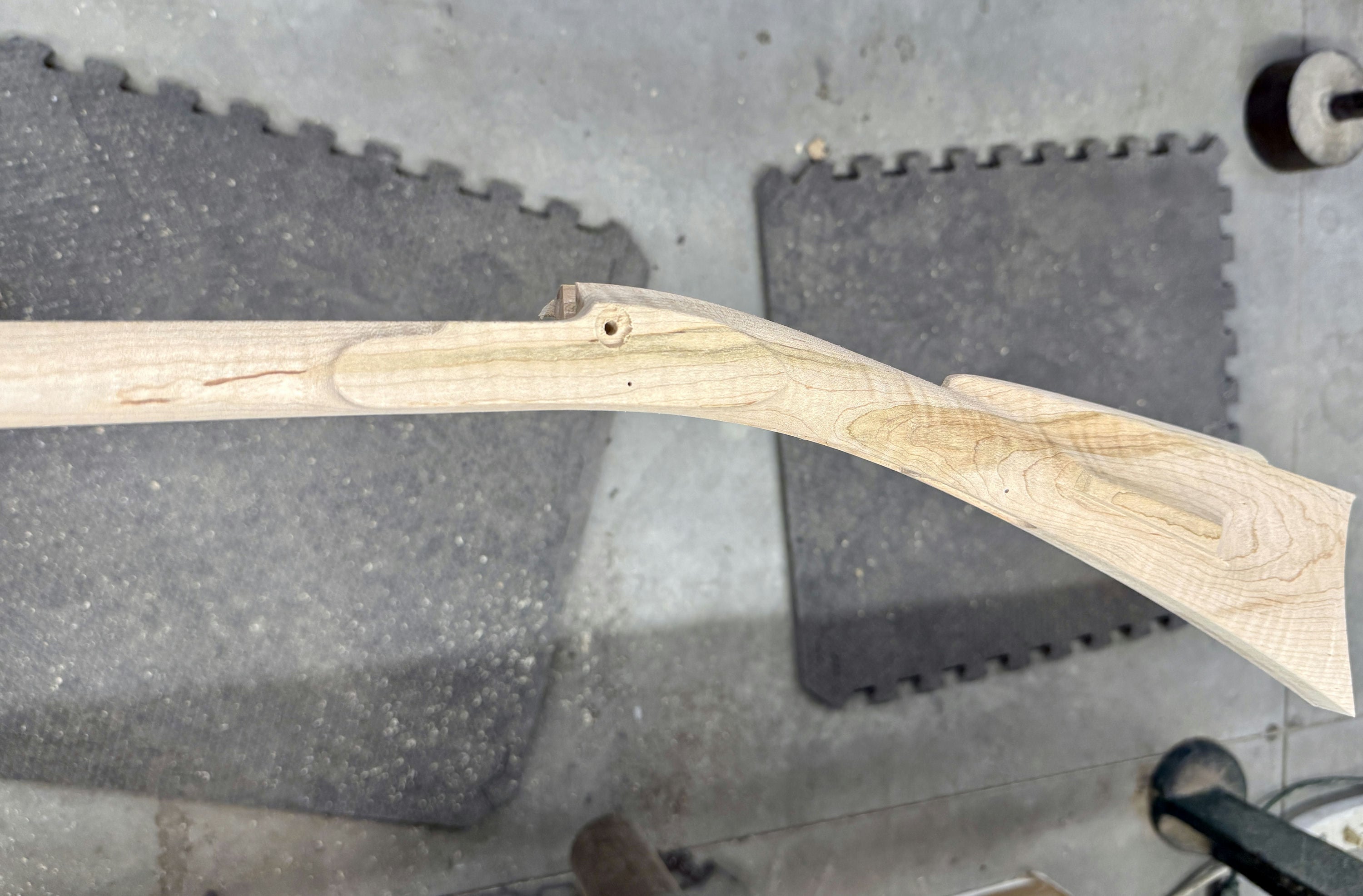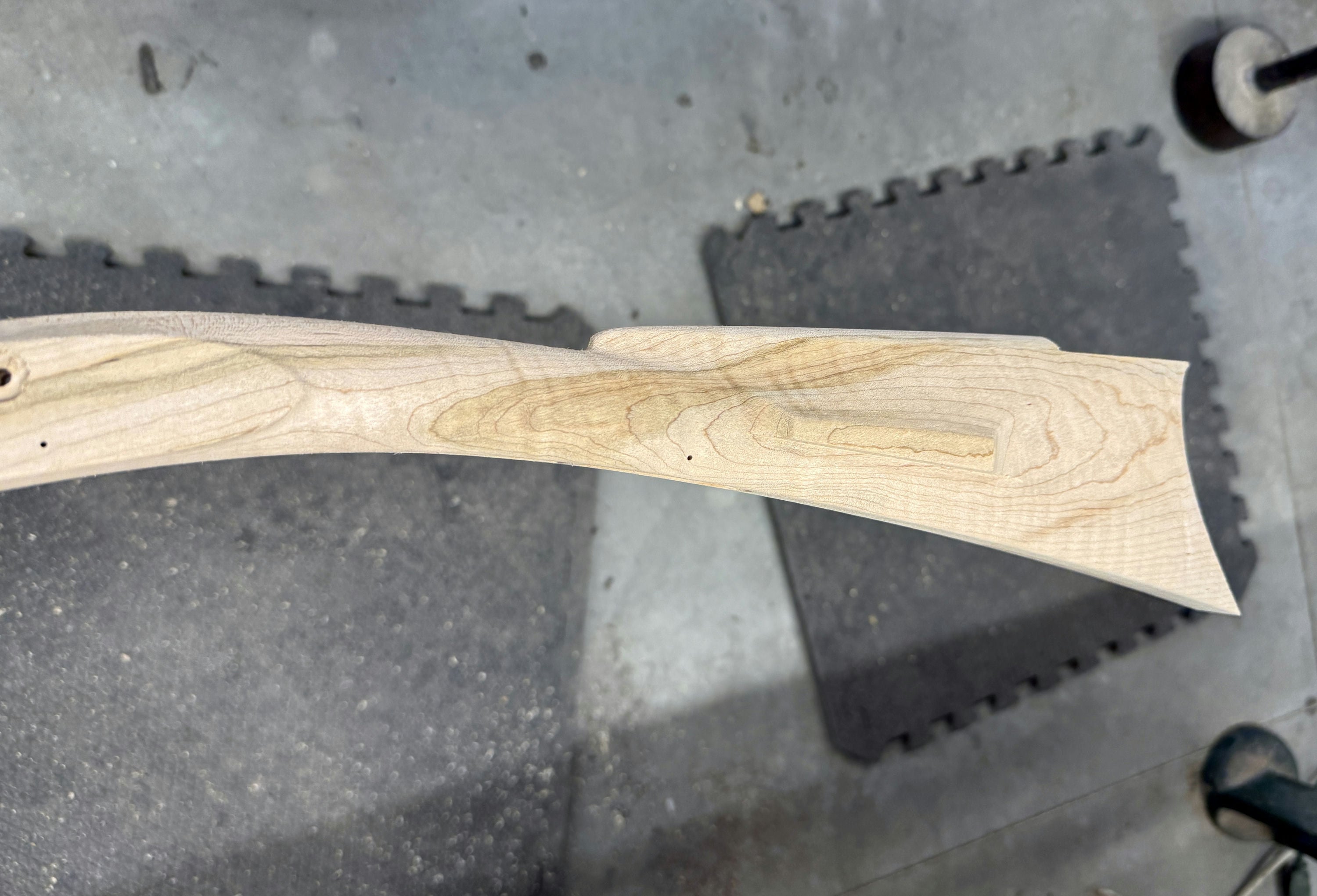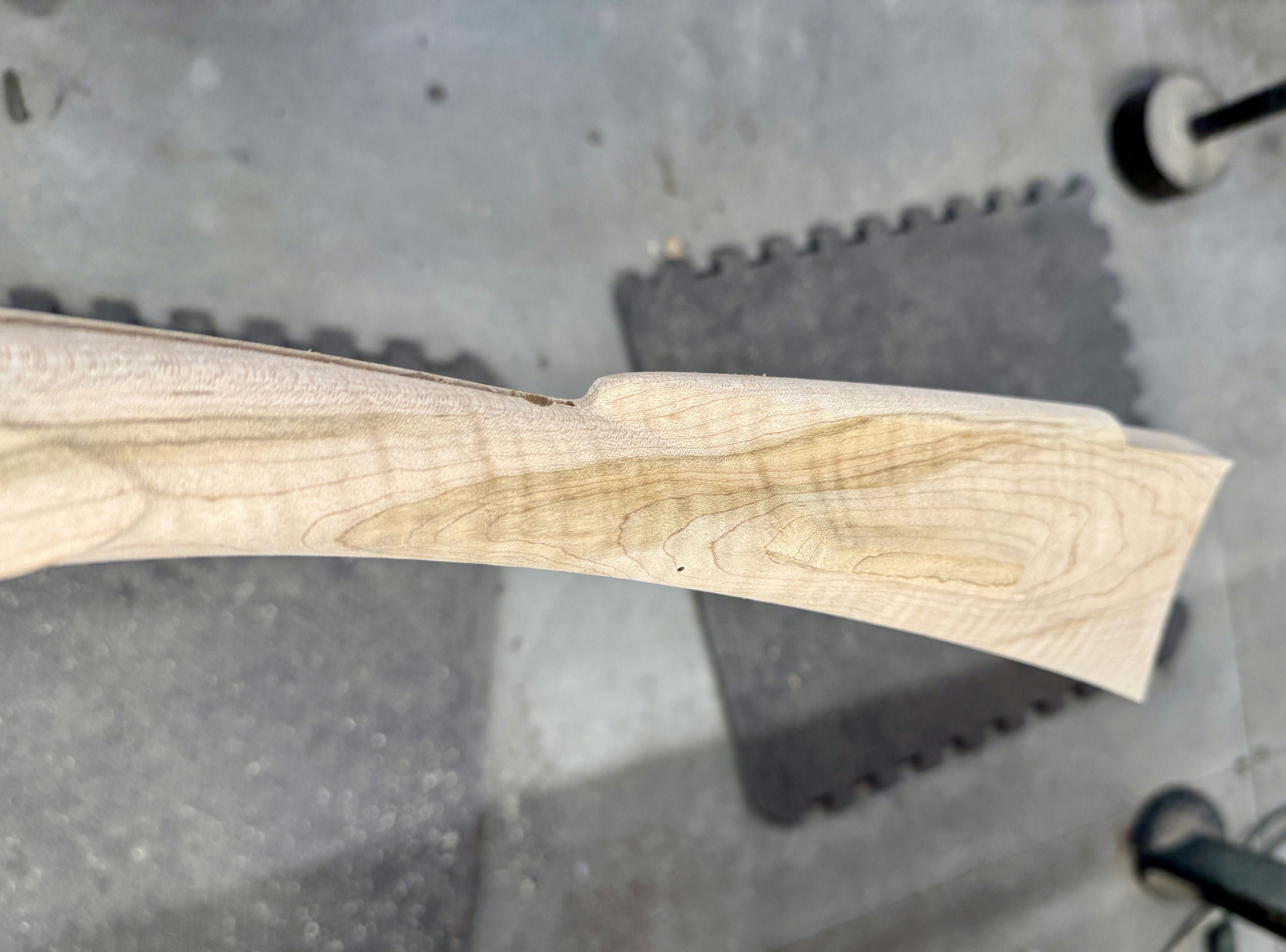 Fancy maple stock with a stain through the buttstock.