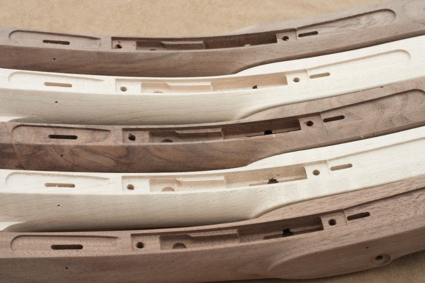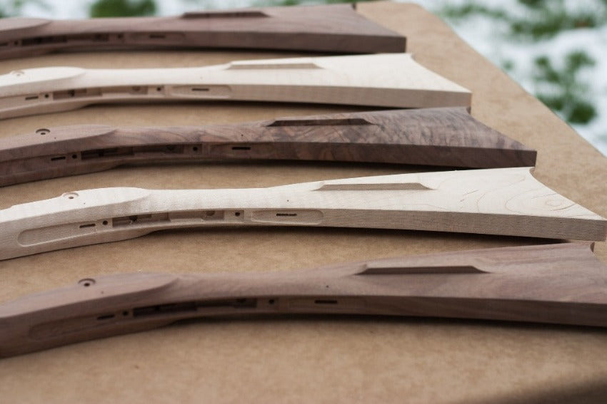 - Available in curly maple, walnut or cherry wood or provide your own stock (2 " by 61" by 7" minimum blank size)